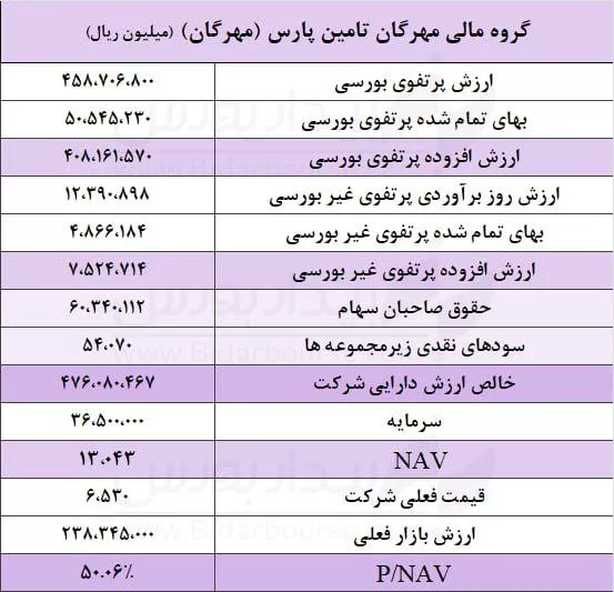 🔍بررسی خالص ارزش داراییهای گروه مالی مهرگان تامین پارس