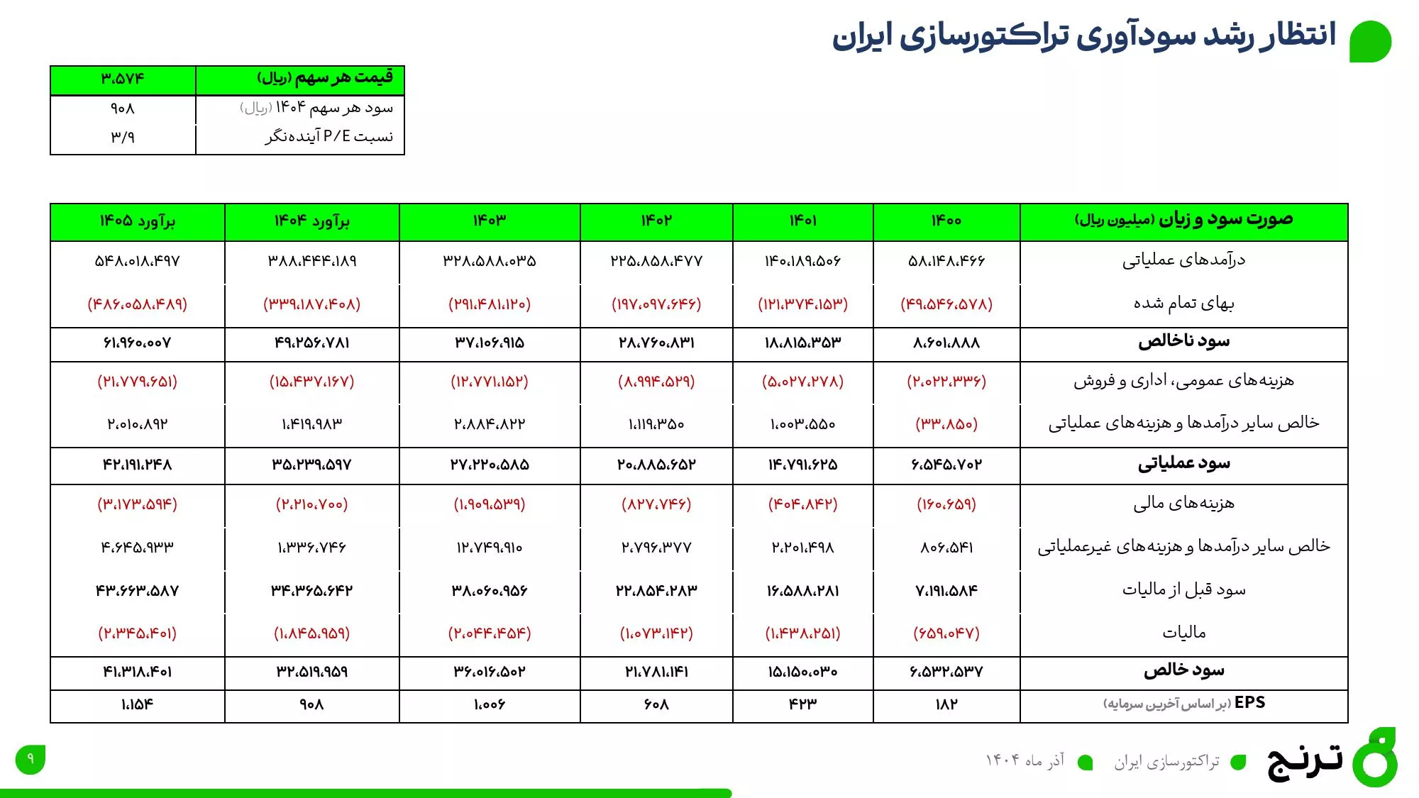 📌 بررسی عملکرد شرکت تراکتورسازی ایران (تایرا) و کارشناسی سود و زیان سال مالی 1403