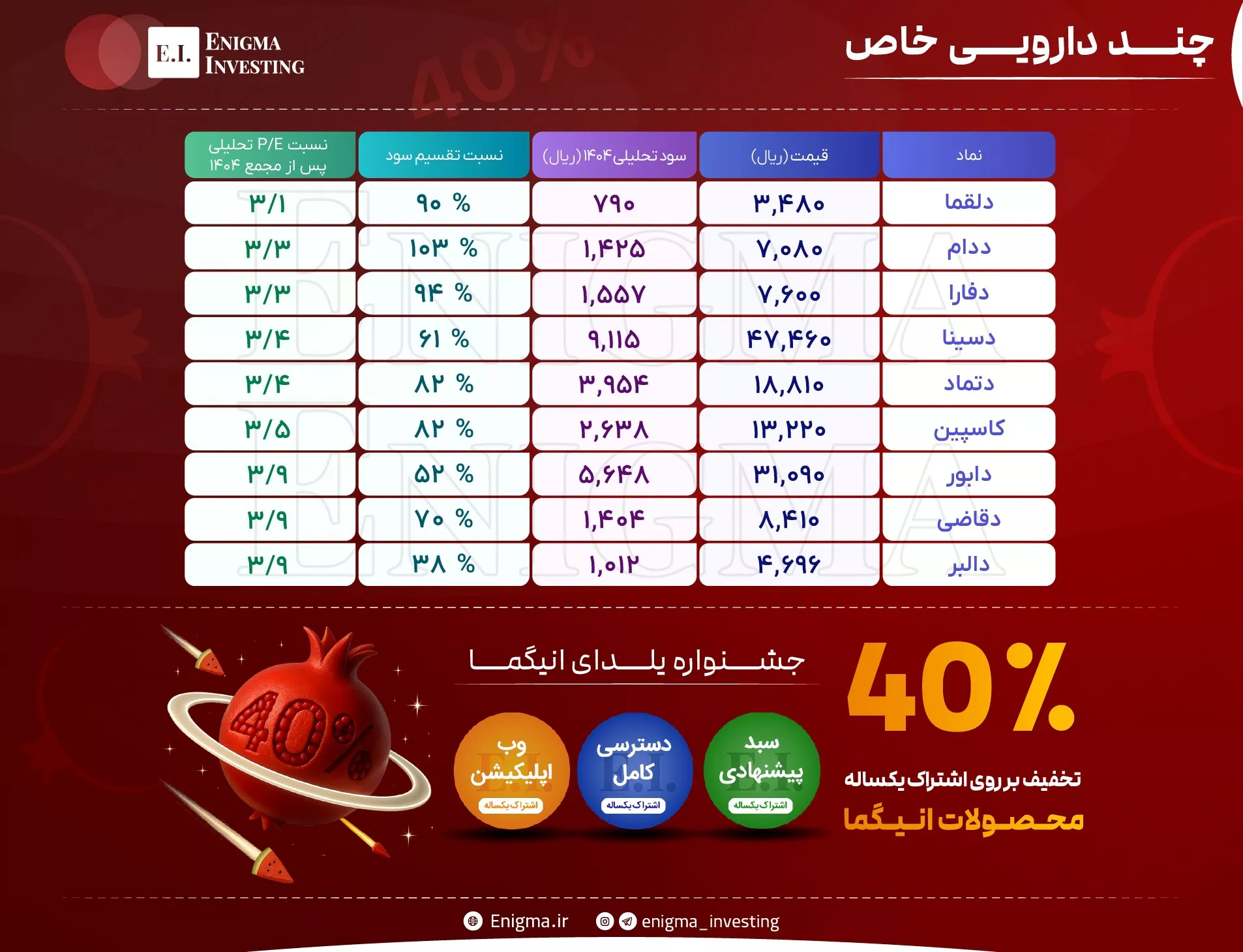 ❇️ در این مطلب به کمک محصول تحلیل بنیادی انیگما سعی کردیم که در صنعت دارو نمادهایی را پیدا کنیم که پس از مجمع سال 1404، P/E تحلیلی زیر 4 داشته باشند.
