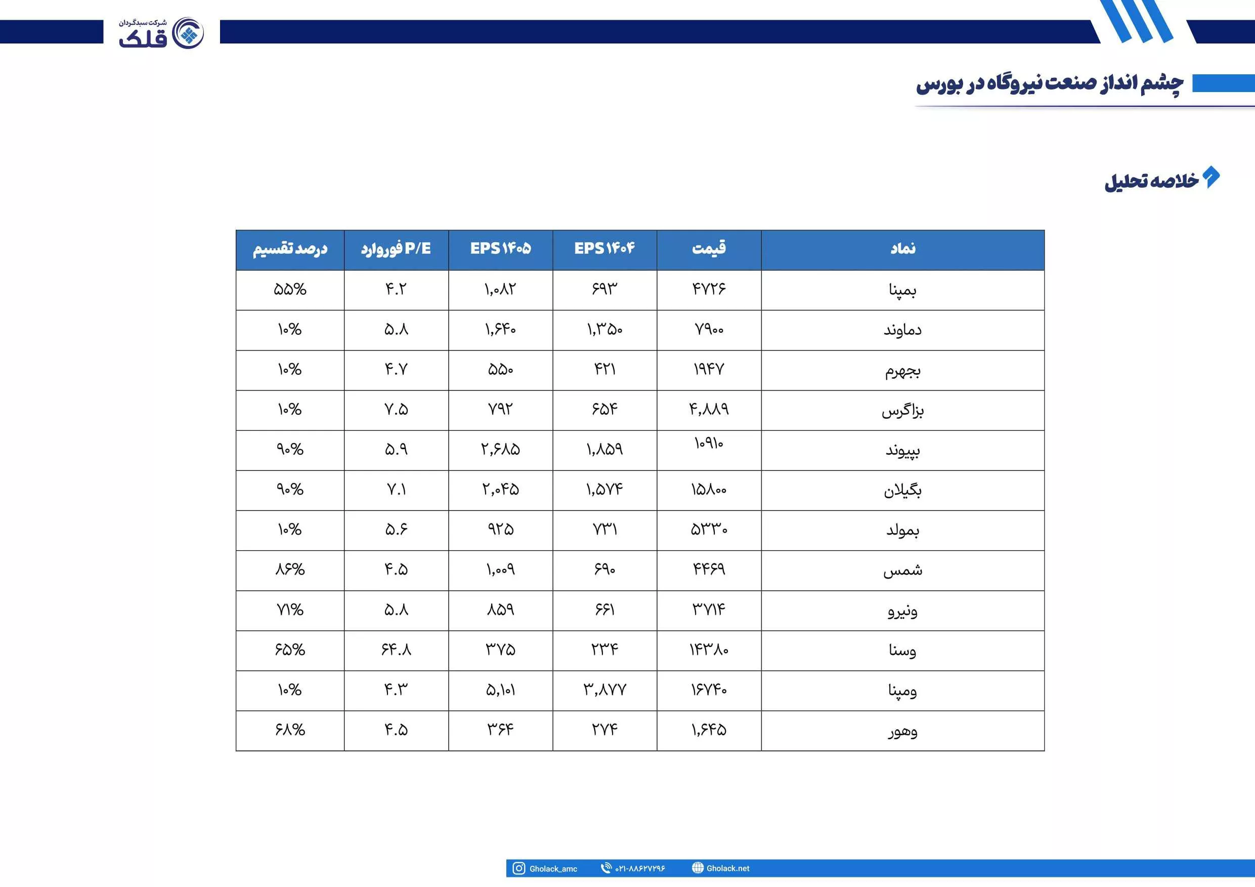 ✅ در این بررسی ۵ سهم با پایینترین نسبت P/E تحلیلی از صنعت نیروگاهی را، از چند منظر مختلف بررسی کردیم.