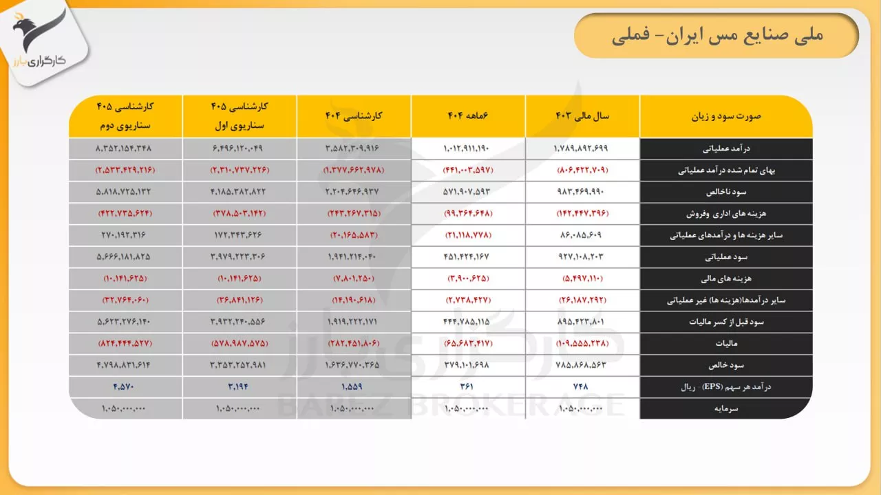 🟡با توجه به مفروضات تحلیل، صورت سود و زیان شرکت فملی برای سال مالی 1404 و 1405 برآورد شدهاست.
