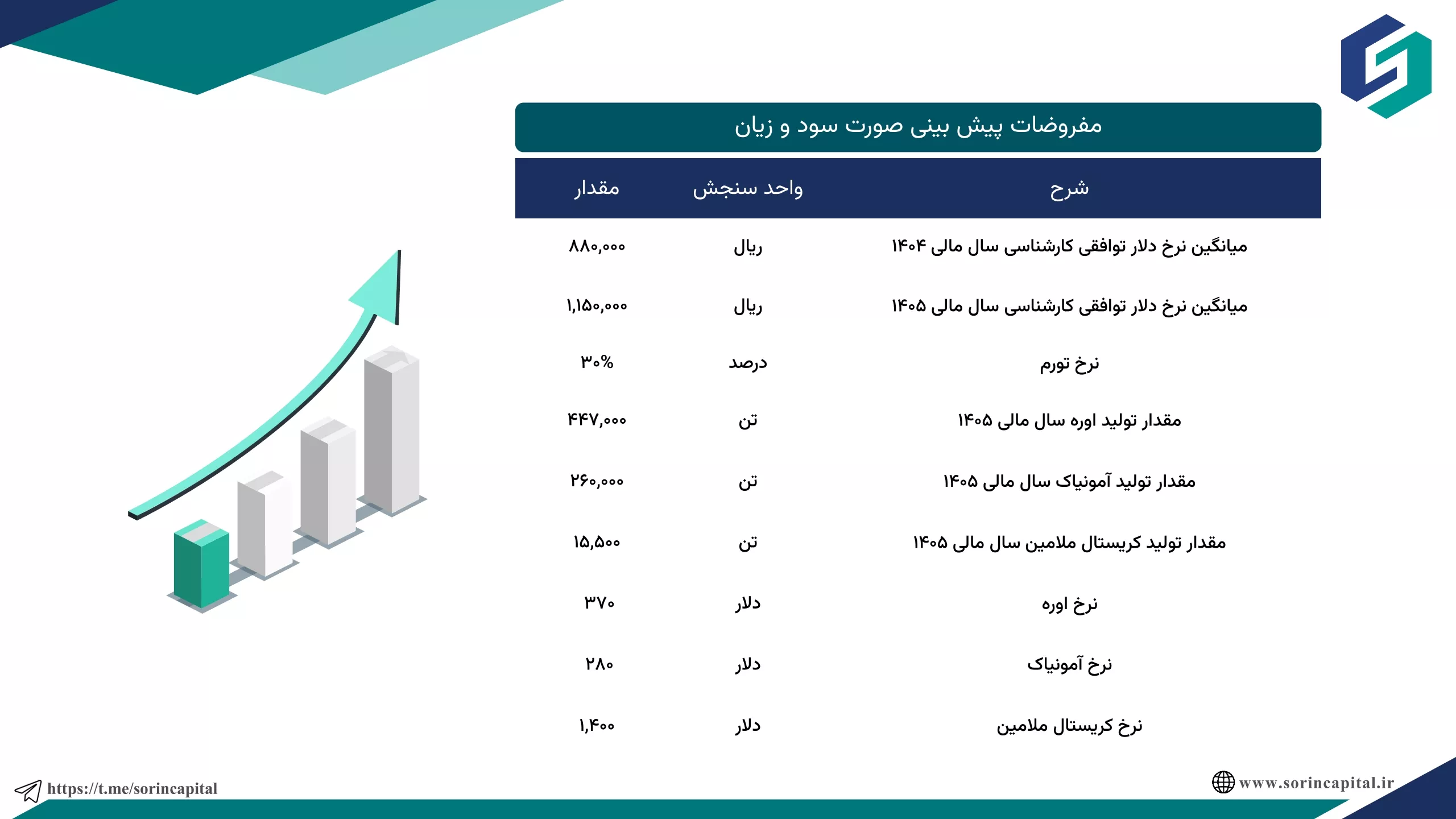 ✅ در این تحلیل نرخ اوره ۴۴۵ دلار، متانول ۲۷۳ دلار و دلار موثر بر شرکتها ۷۰ هزار تومان در نظر گرفته شده است.