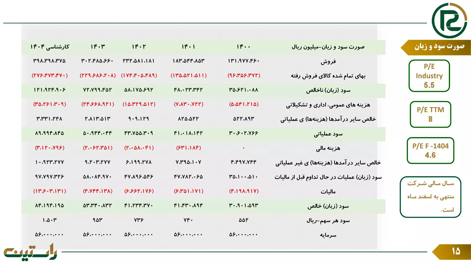 ➖سود پیش بینی شده هر سهم ۴۰۴