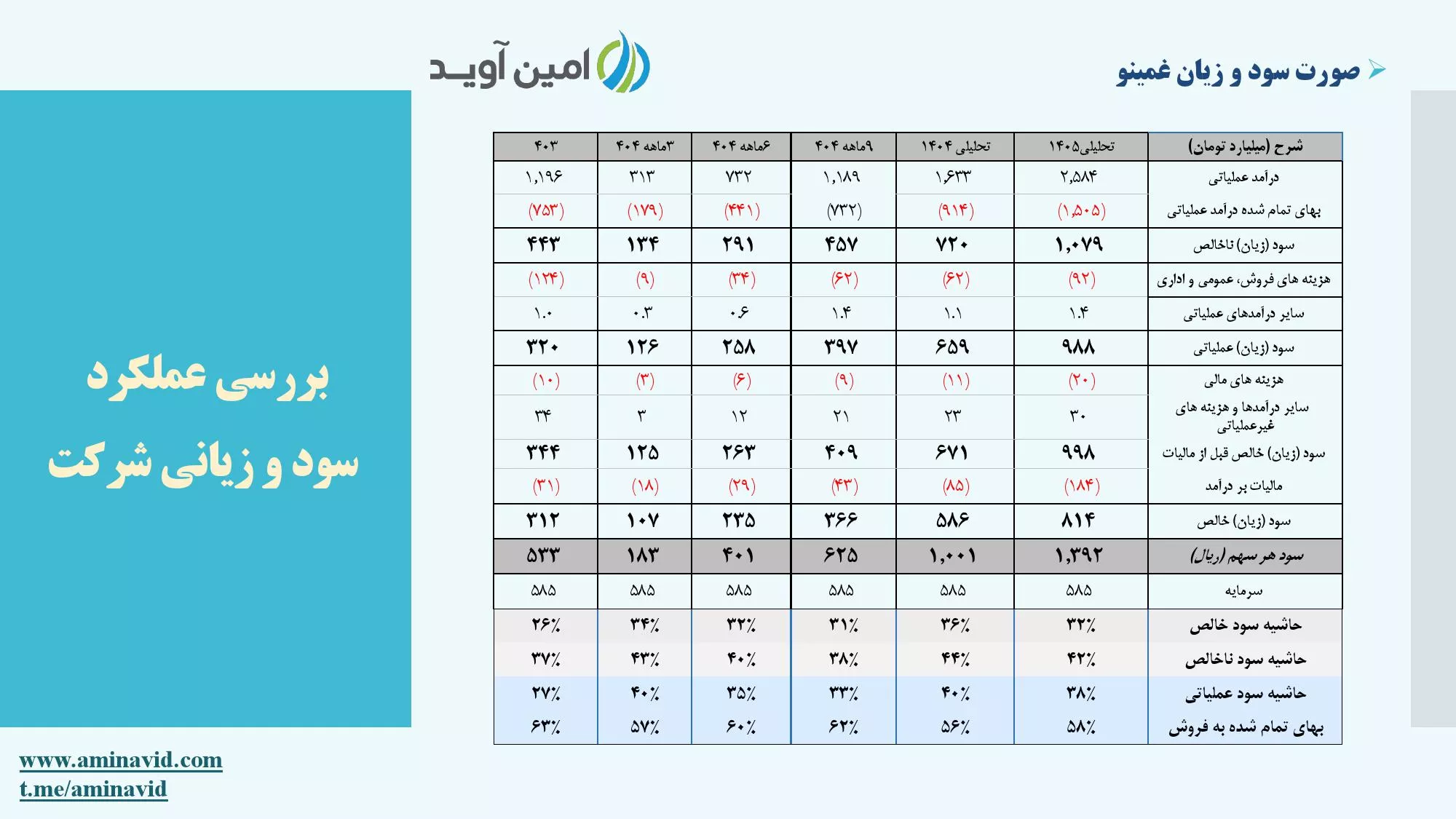 🔵بررسی عملکرد شرکت صنایع غذایی مینو شرق (غمینو) و کارشناسی سود و زیان سال مالی 1404