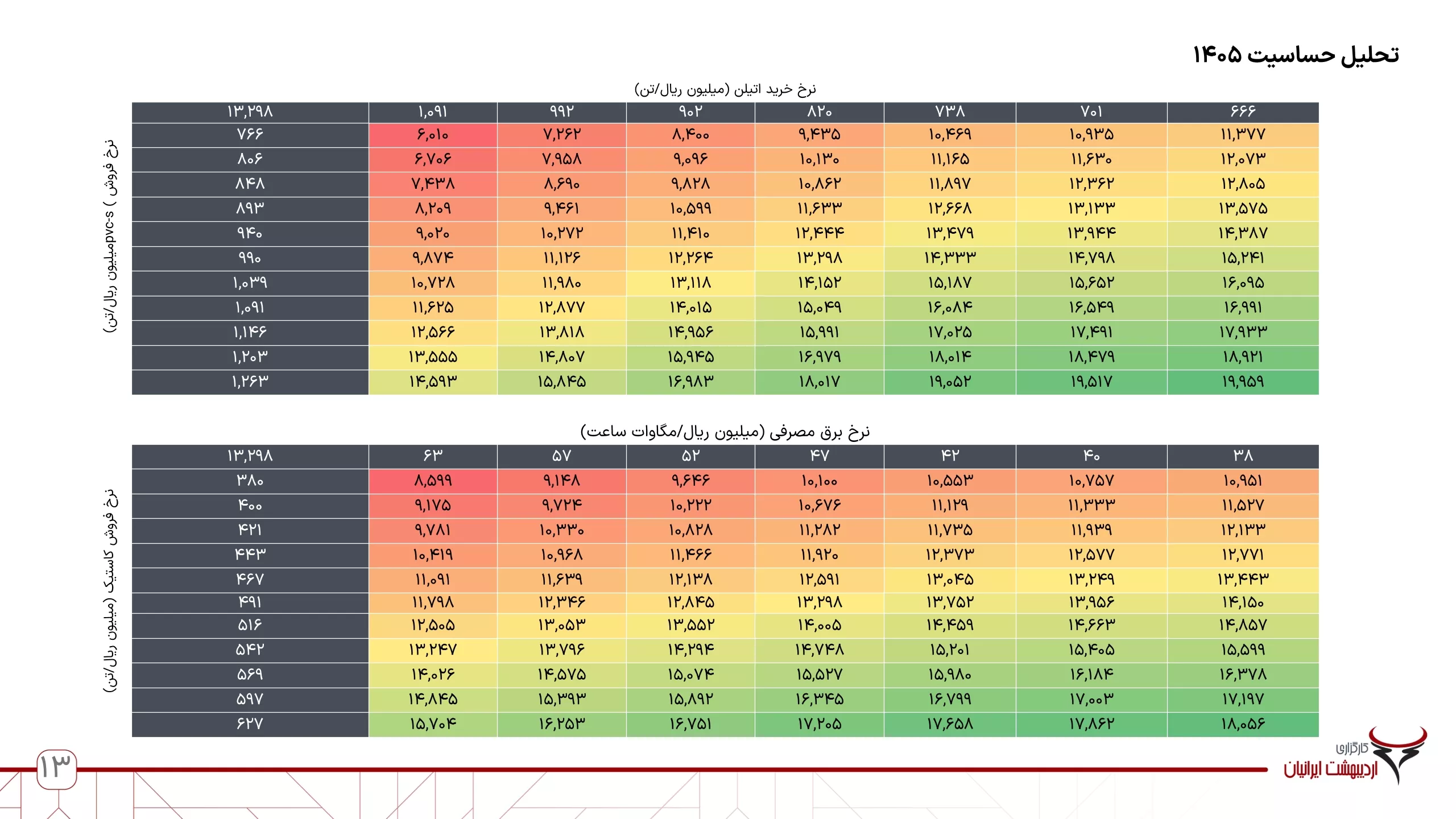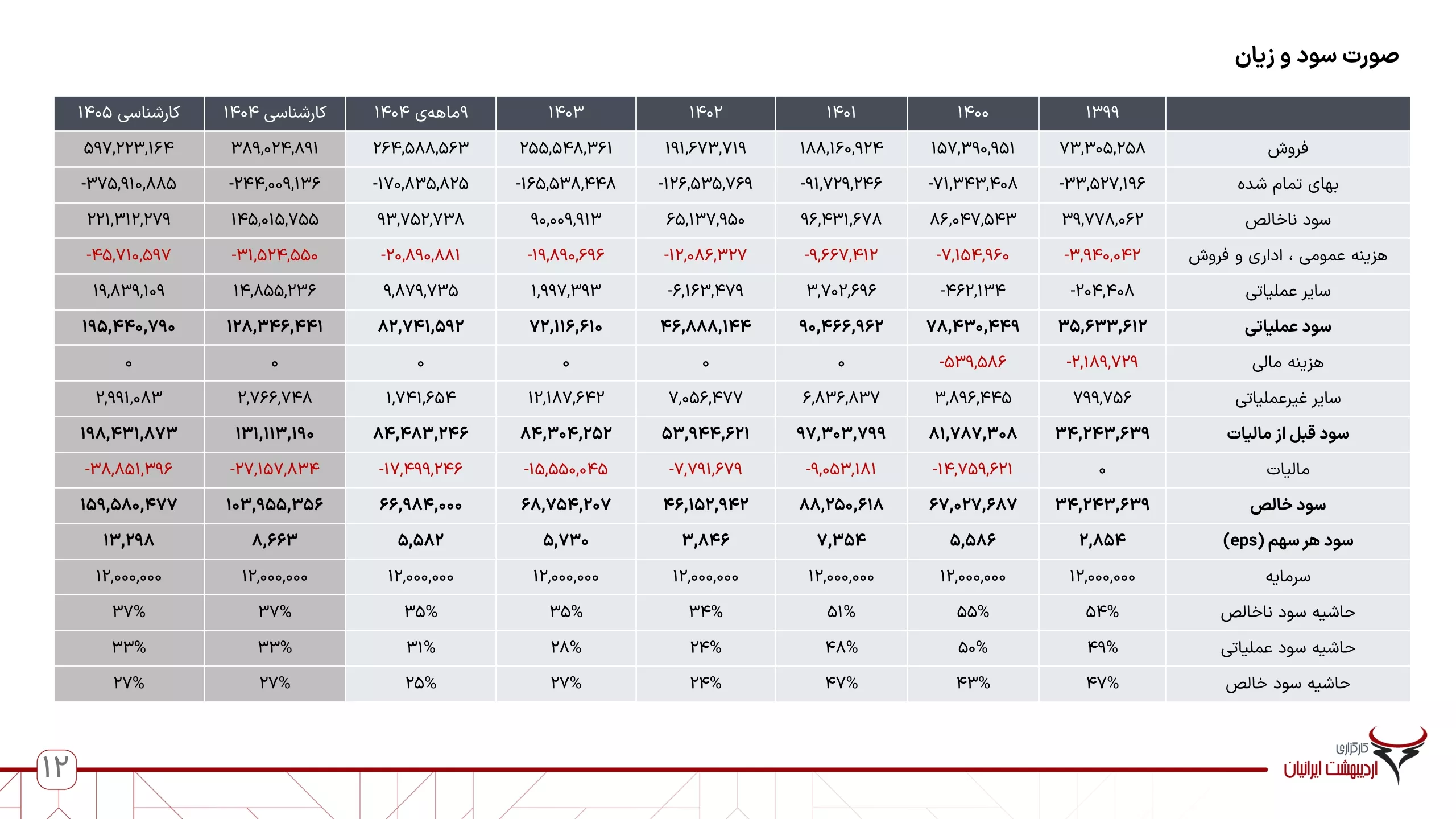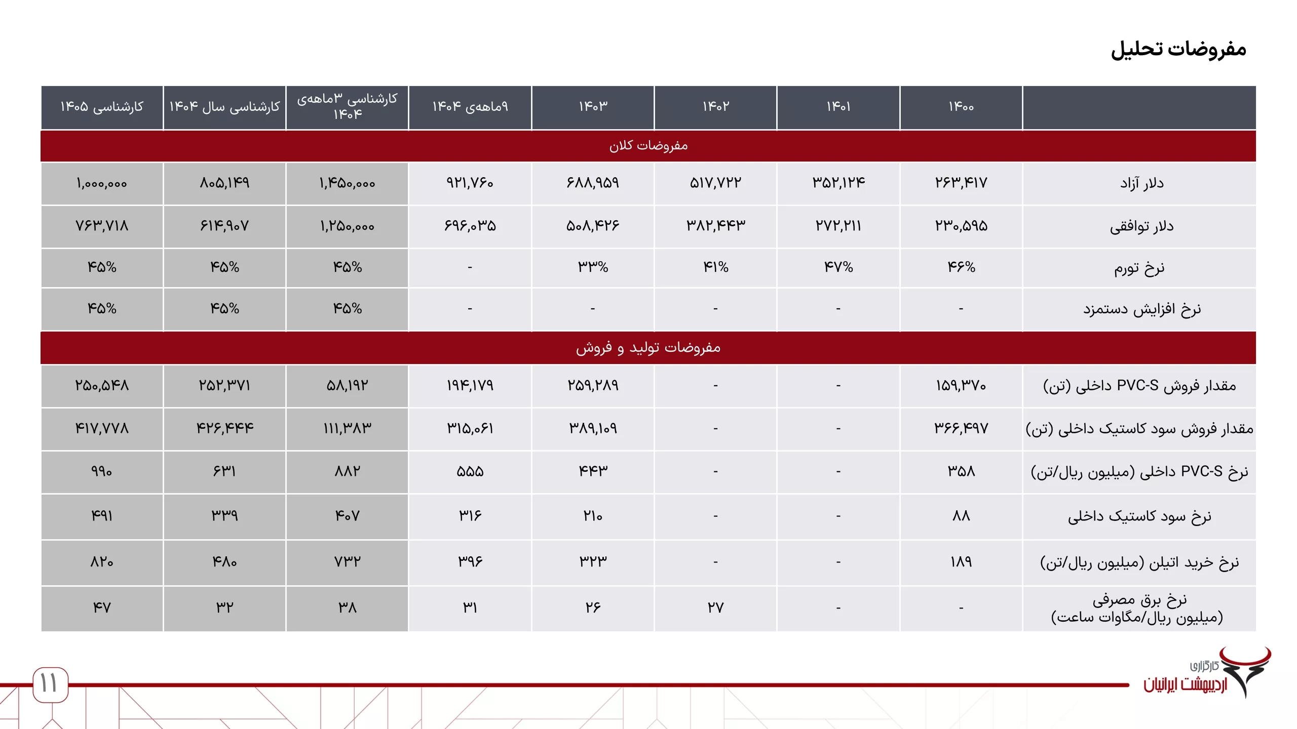 با مفروضات ذکر شده در فایل تحلیل برای سال ۱۴۰۴، ۸۶۶ تومان و برای سال ۱۴۰۵، ۱۳۳۰ تومان سود به ازای هر سهم برآورد میشود. بدین ترتیب P/E سال ۱۴۰۵ با قیمت امروز سهم، ۴.۴ محاسبه میگردد.
