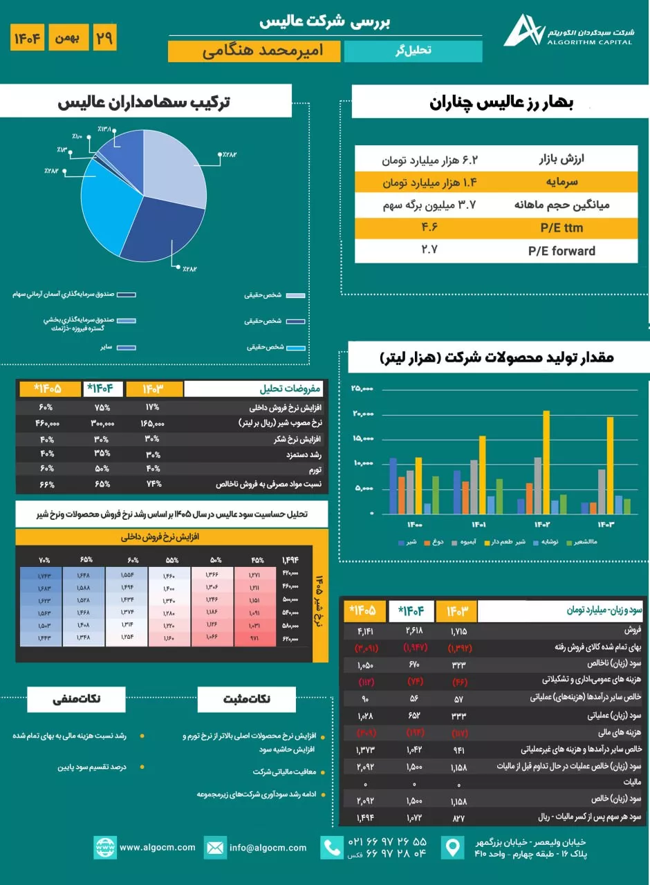 📌 بررسی عملکرد شرکت بهار رز عالیس چناران (عالیس) و کارشناسی سود و زیان سال مالی 1402 و 1403