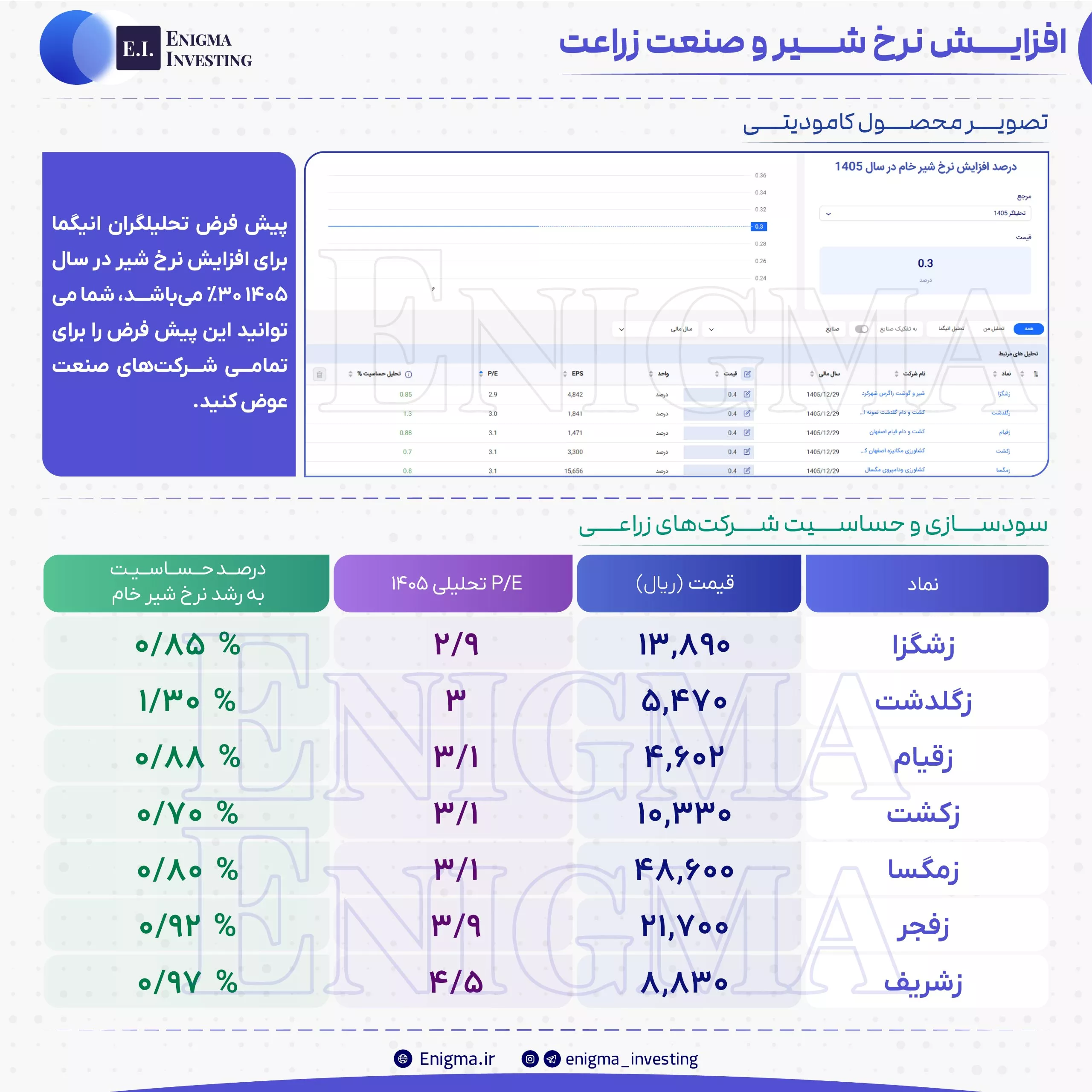 ❇️ در این پست با استفاده از محصول کامودیتی انیگما، به بررسی این موضوع پرداختیم که با افزایش نرخ شیرخام سودسازی شرکتهای صنعت زراعت در ادامه چگونه خواهد شد.