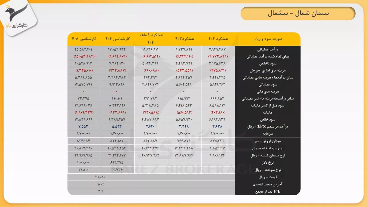 📌 بررسی عملکرد شرکت سیمان شمال (سشمال) و کارشناسی سود و زیان سال مالی 1403 و 1404