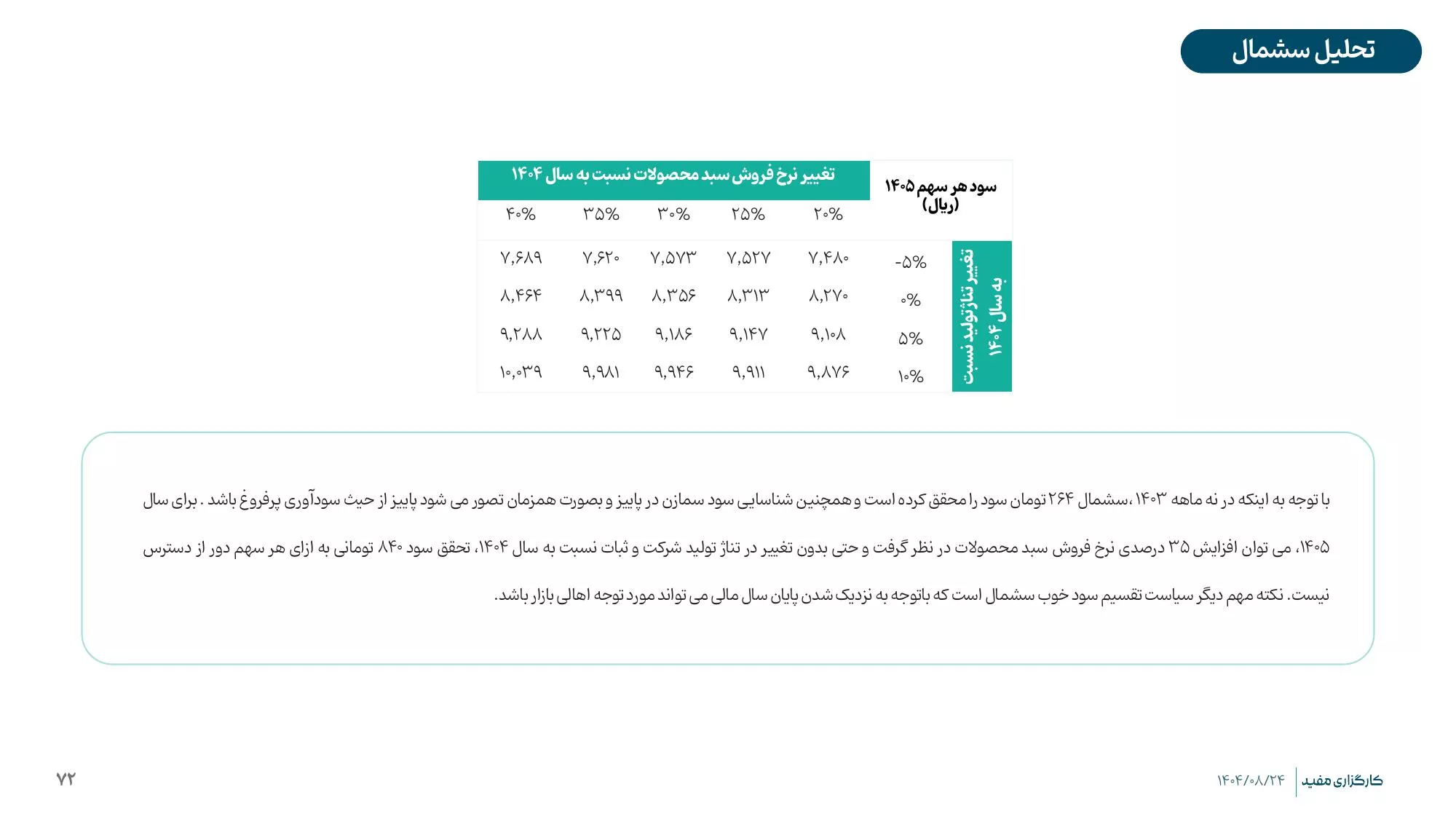 📊 نسبتهای تقسیم سود برمبنای مجمع سال گذشته و سود تحلیلی بر مبنای تحلیل سایت انیگما استخراج شده است.
