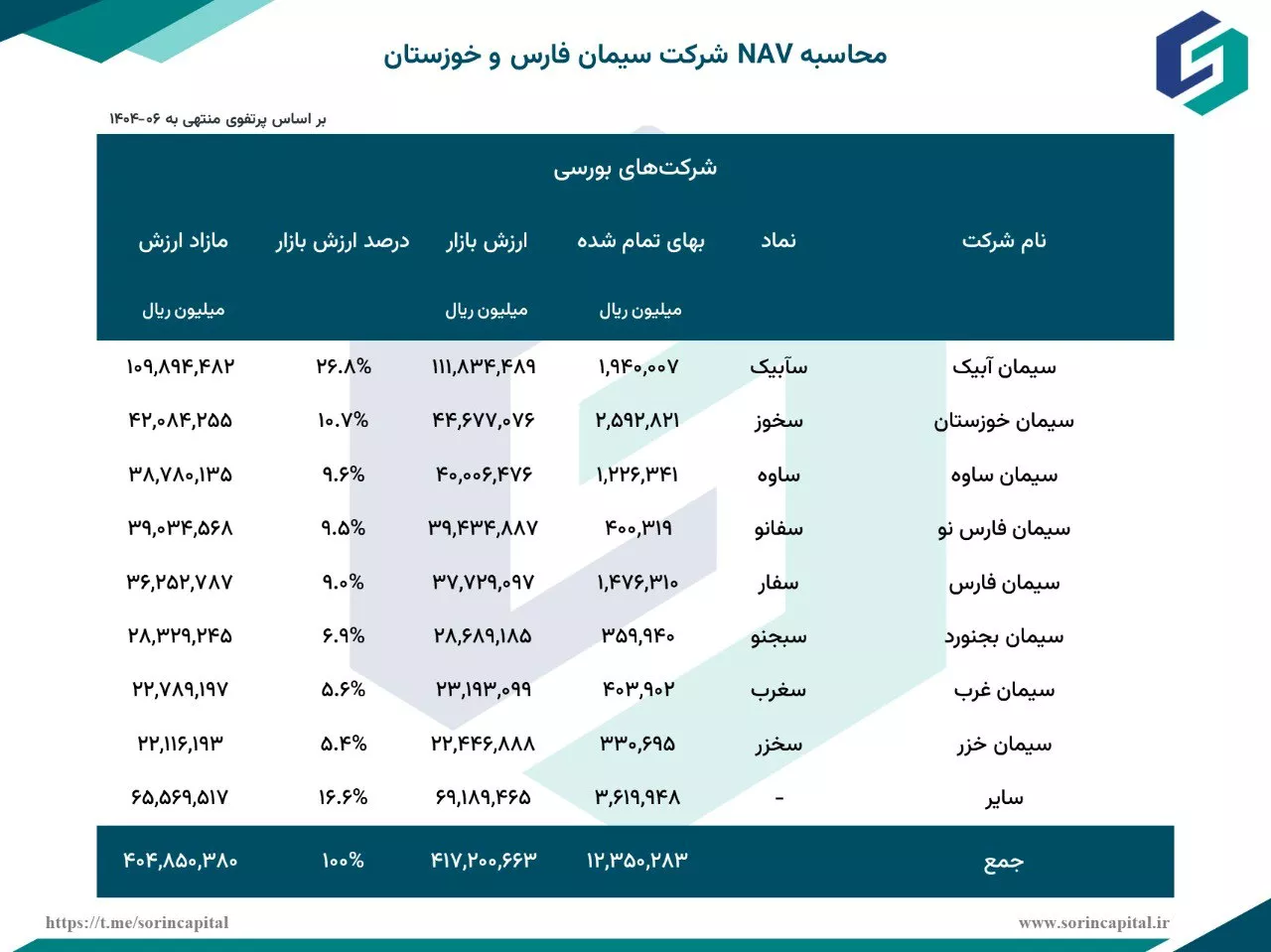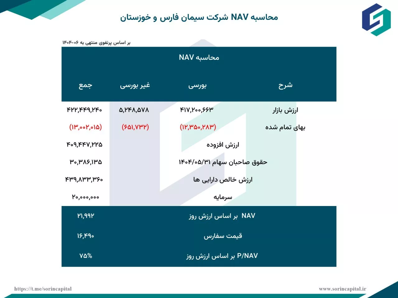 بدین ترتیب NAV هر سهم #سفارس 51635 ریال و نسبت P/NAV روز شرکت 73 درصد می باشد.