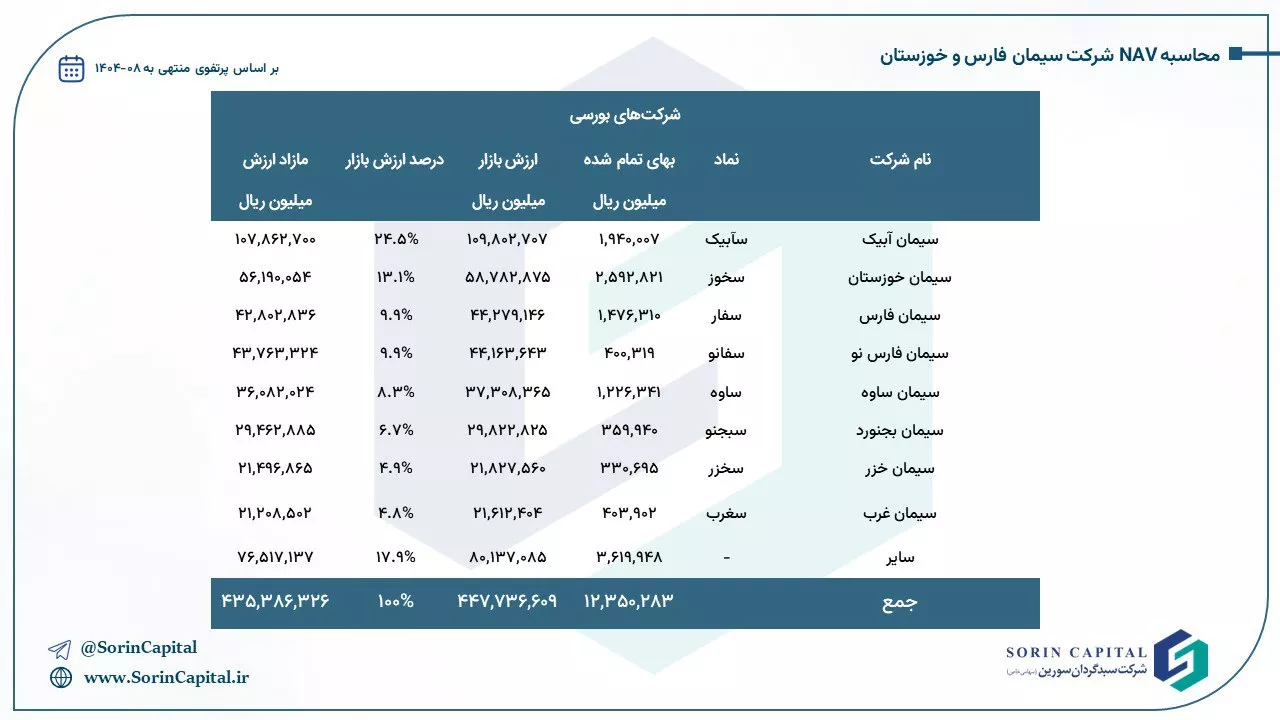 بدین ترتیب NAV هر سهم #سفارس 41921 ریال و نسبت P/NAV روز شرکت 84 درصد می باشد.