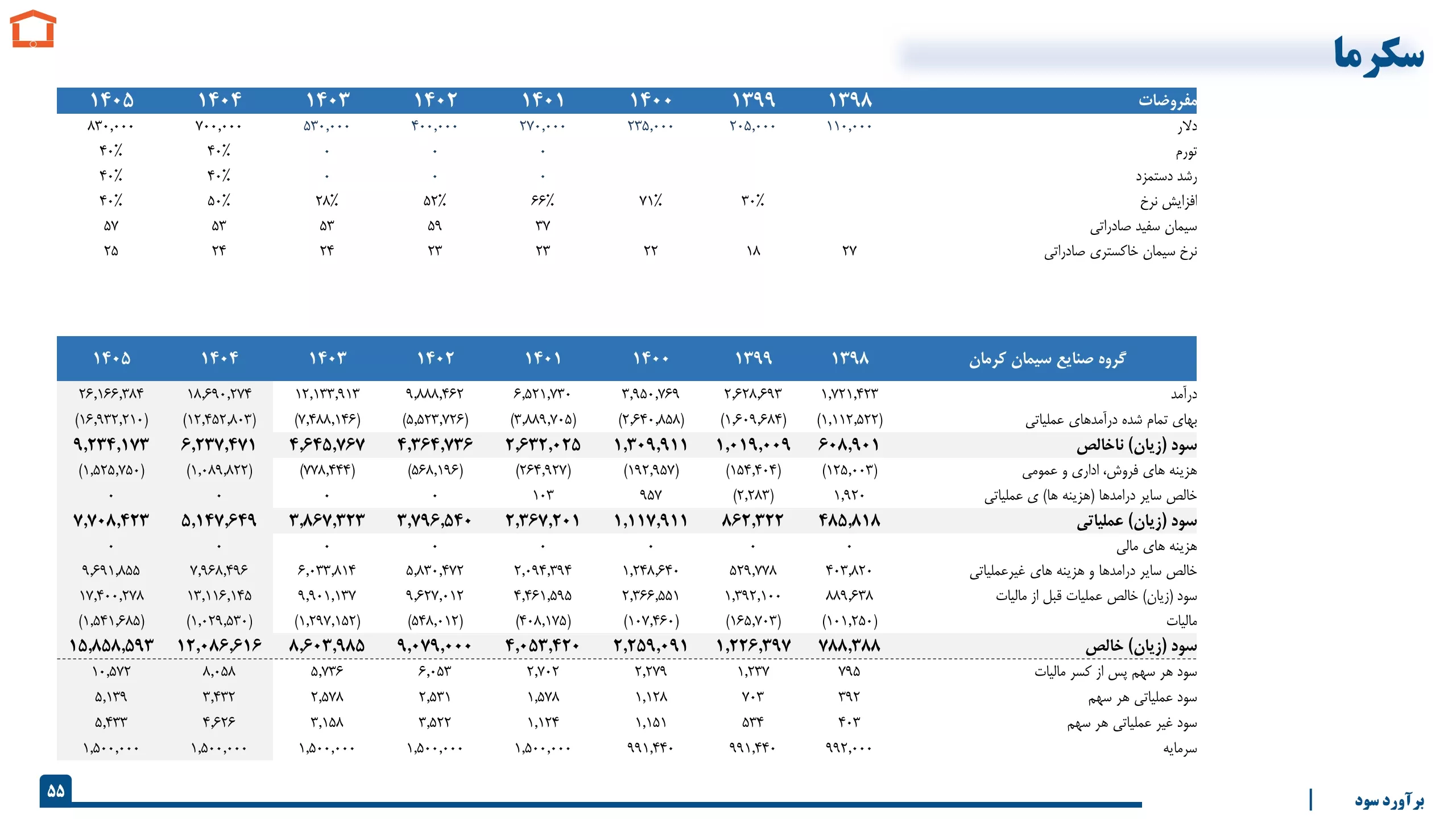 📌 بررسی عملکرد شرکت سیمان کرمان (سکرما) و کارشناسی سود و زیان سال مالی 1403 و 1404