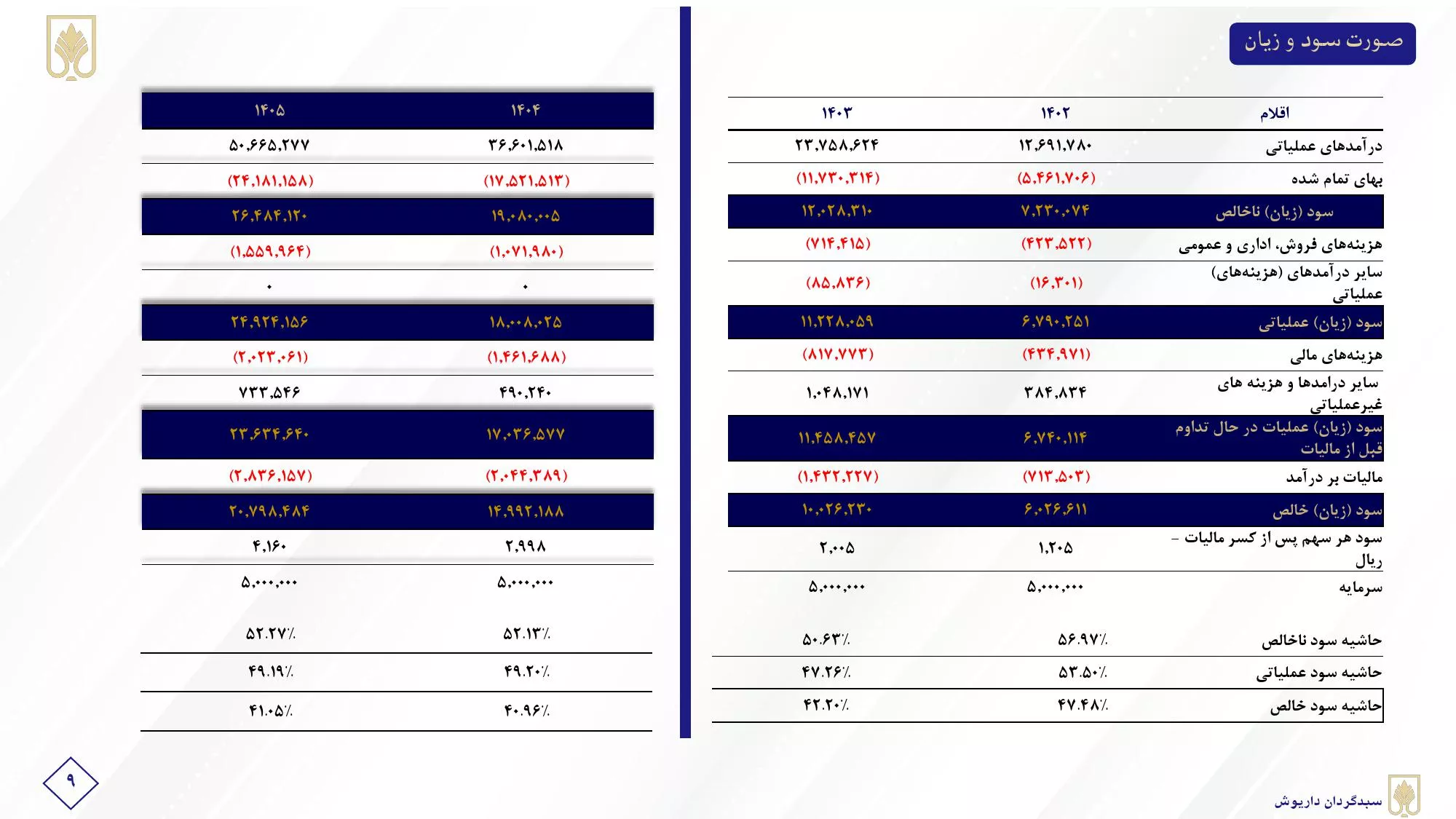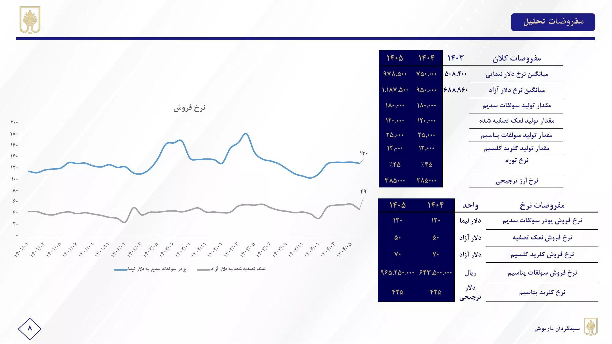 🔘سال مالی شرکت ۲۹ اسفند میباشد. این شرکت در سال مالی ۱۴۰۳ فروش حدود ۲.۴ هزار میلیارد تومانی و حجم فروش ۳۲۷ هزار تن را شناسایی نمود که نسبت به سال مالی گذشته رشدی ۸۷ درصدی در مبلغ و افزایش ۶درصدی در حجم فروش را با حاشیه ناخالص ۵۱درصدی داشته است.