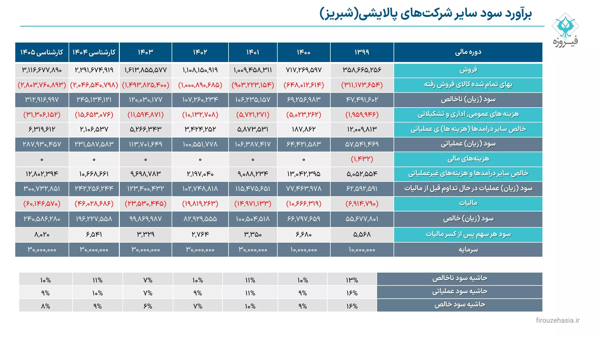 شرکت پالایش نفت تبریز، با ظرفیت حدود 110 هزار بشکه در روز، بنزین با استاندارد یورو 5 (اکتان 91) و گازوئیل با محدوده گوگرد 500 تا 2500 PPM تولید میکند. سودآوری شبریز به شدت به عوامل کلان اقتصادی و سیاسی، مانند قیمت نفت خام، نرخ خوراک پالایشگاهها و نرخ ارز، وابسته است. نسبت قیمت به درآمد (P/E) شبریز بر اساس سود سال 1404، حدود 4.4 محاسبه شده است. در صورت تداوم شرایط مثبت در بازار سرمایه، شبریز میتواند یک گزینه سرمایهگذاری با ریسک نسبتا پایین باشد.
