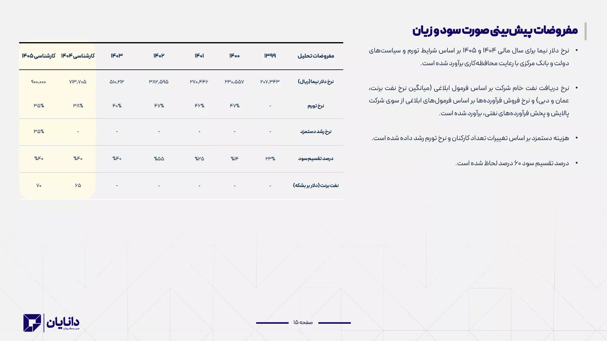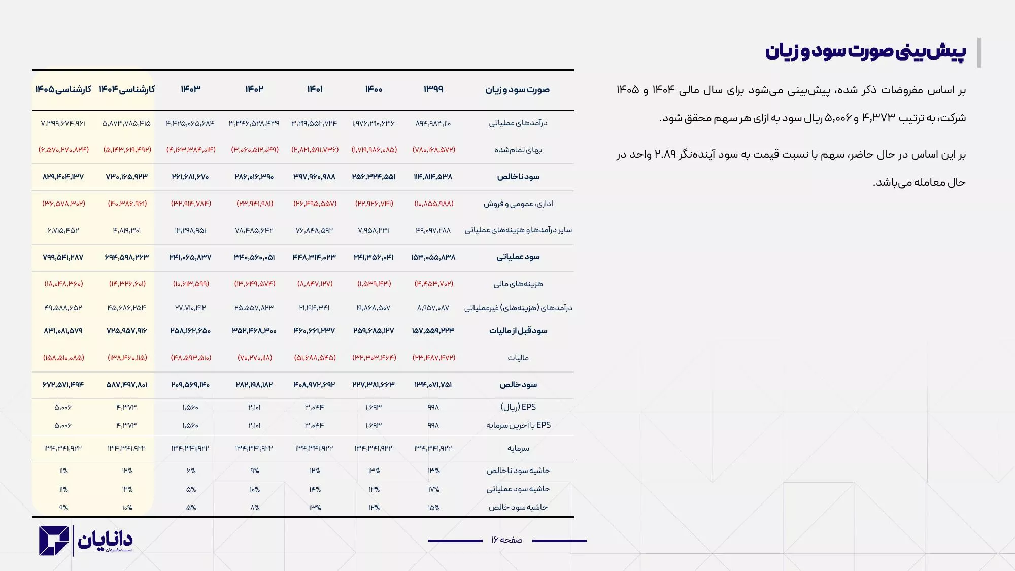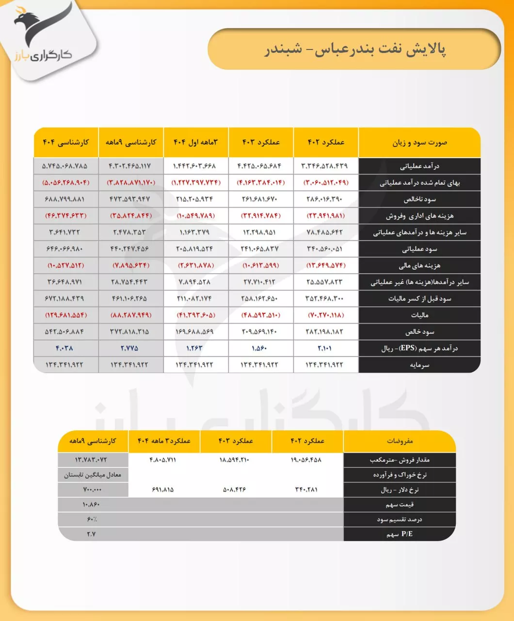 ➖مفروضات پیش بینی سود ۴۰۴