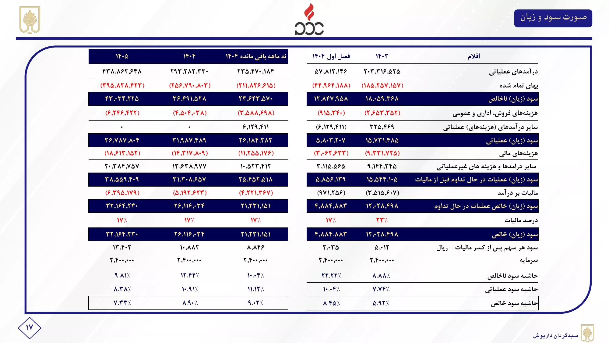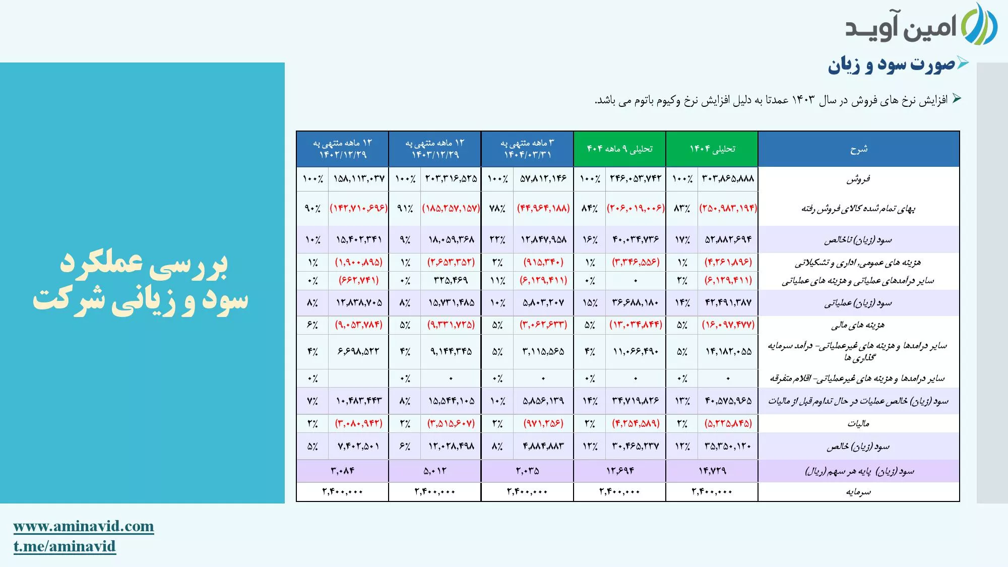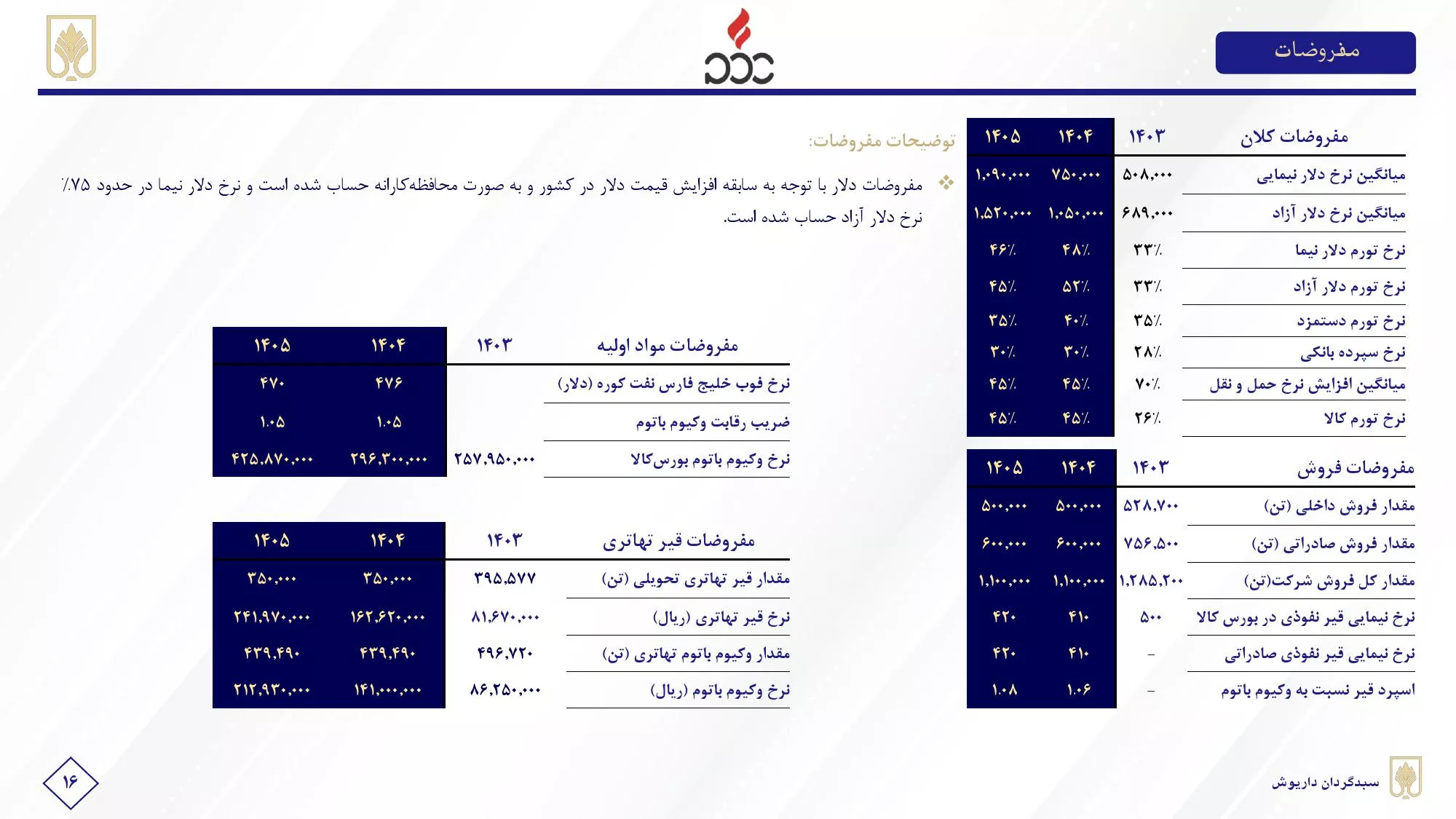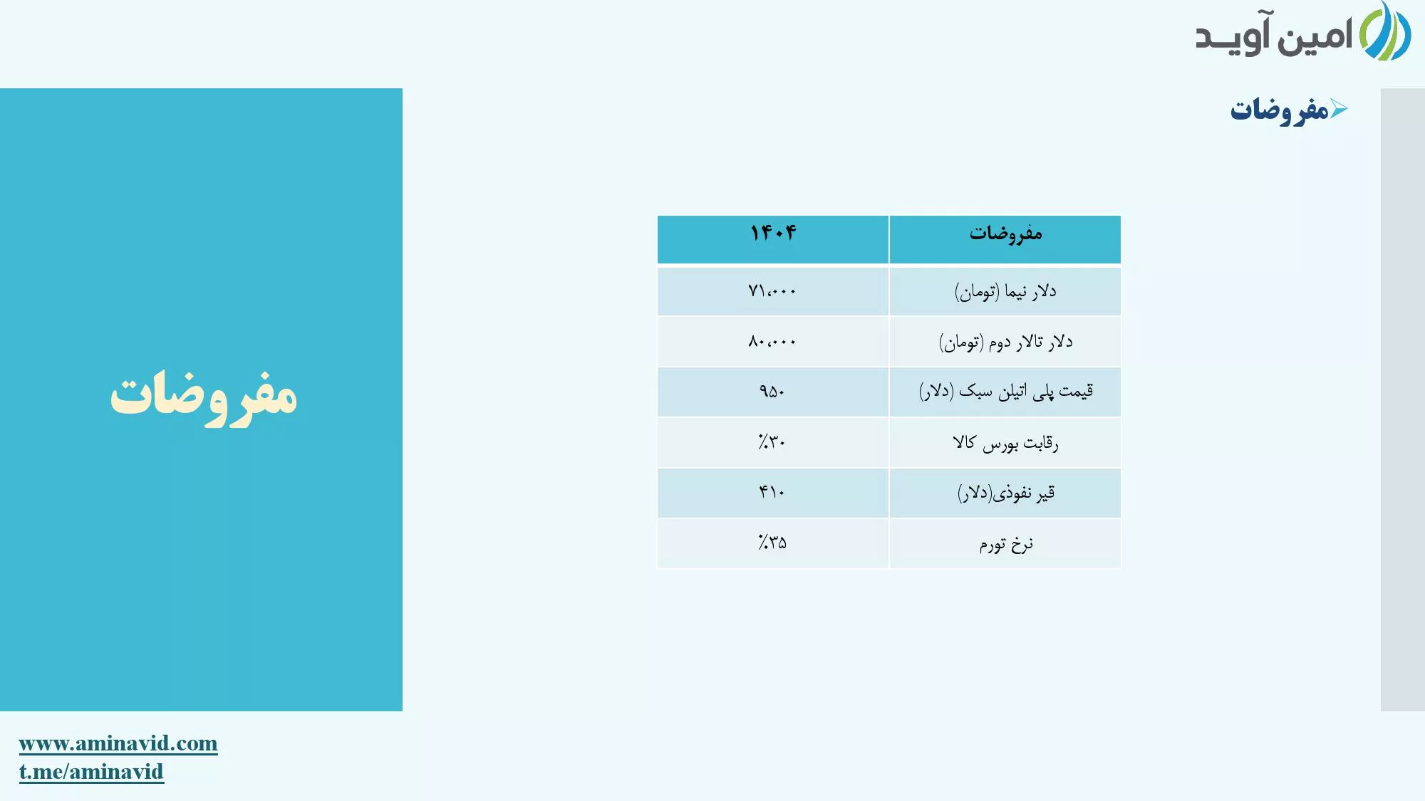 ➖مفروضات پیش بینی سود ۴۰۴