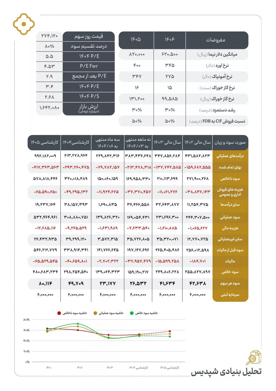 🔗 در تصویر بالا چکیدهای از تحلیل بنیادی شپدیس را بهعنوان یکی از بزرگترین شرکتهای تولید و توزیع فرآوردههای اوره و آمونیاک مشاهده میکنید.