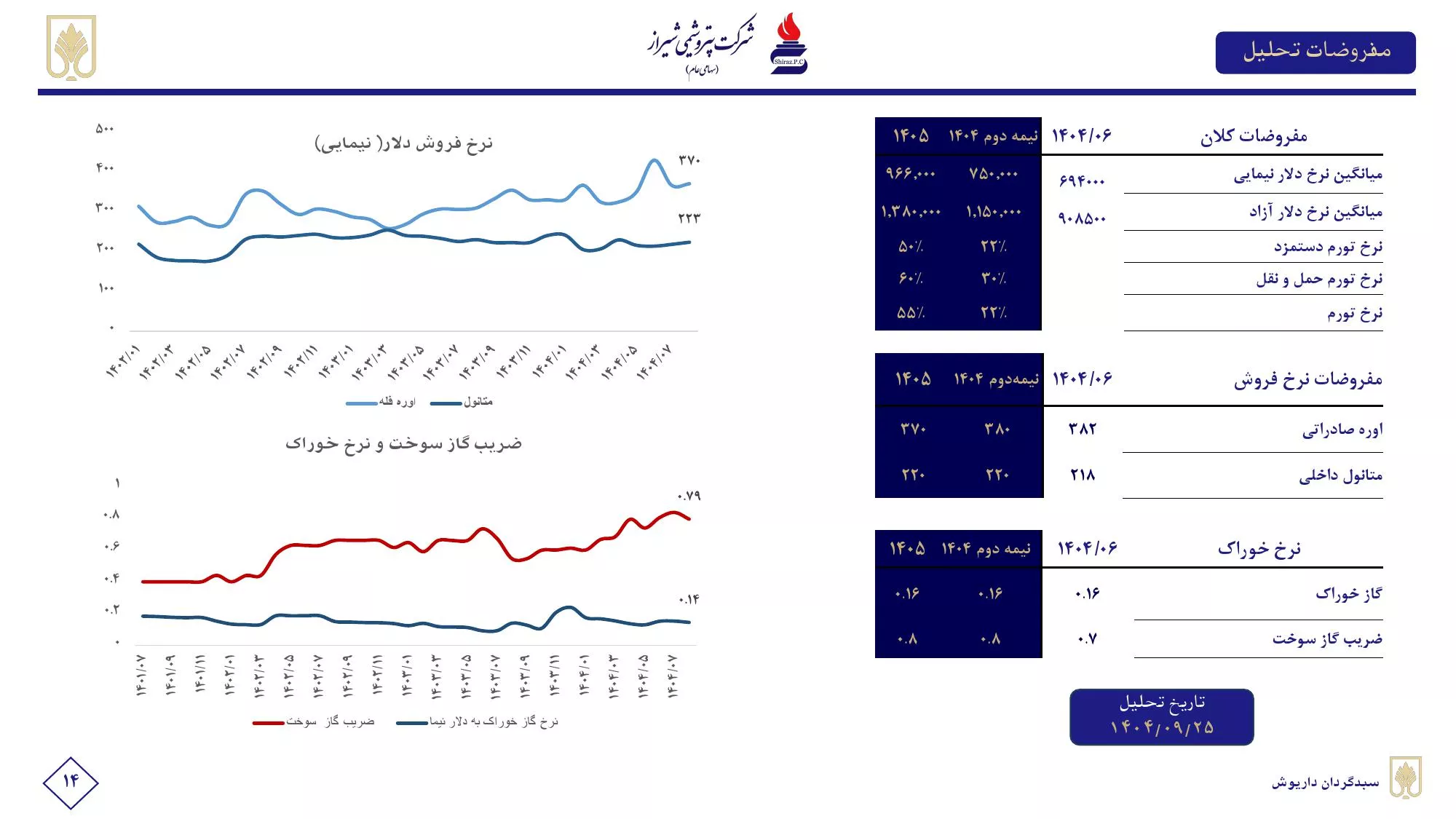 ✅ در این تحلیل نرخ اوره ۴۴۵ دلار، متانول ۲۷۳ دلار و دلار موثر بر شرکتها ۷۰ هزار تومان در نظر گرفته شده است.