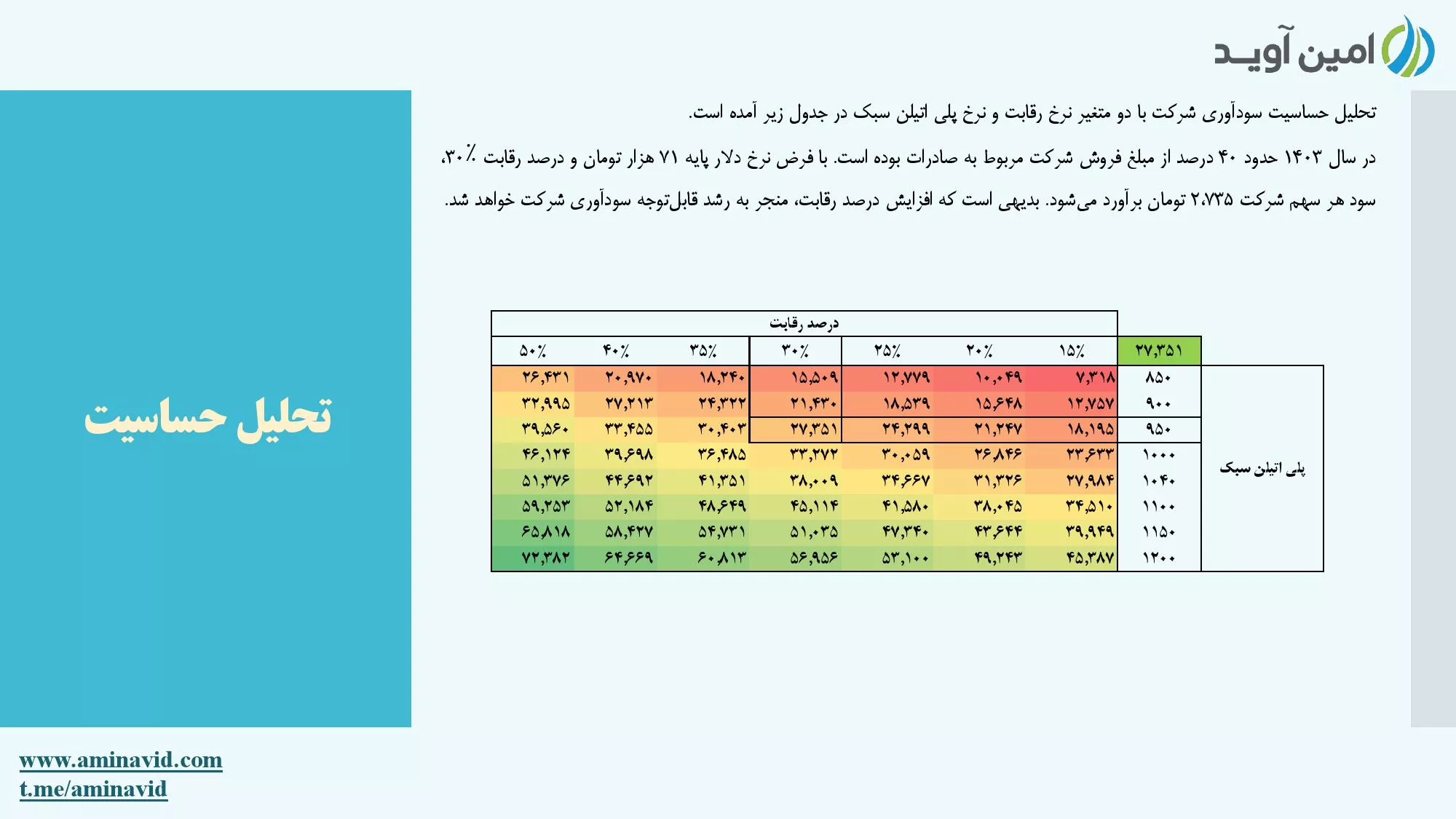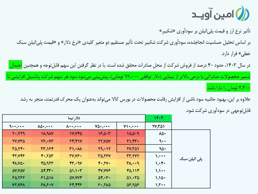 📊 تحلیل حساسیت سود شرکت پتروشیمی امیرکبیر (شکبیر)