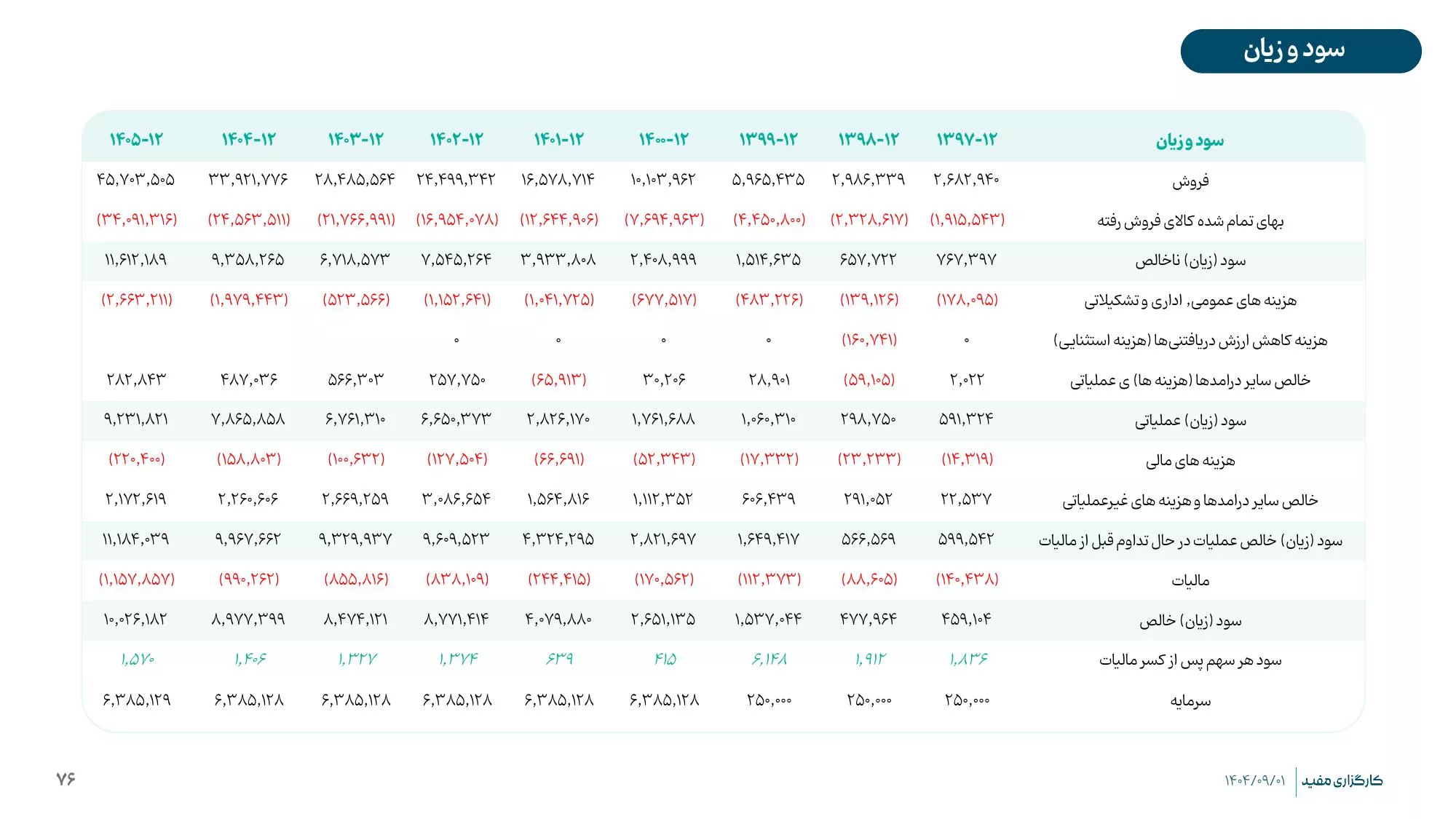 💡 سود و زیان برآوردی