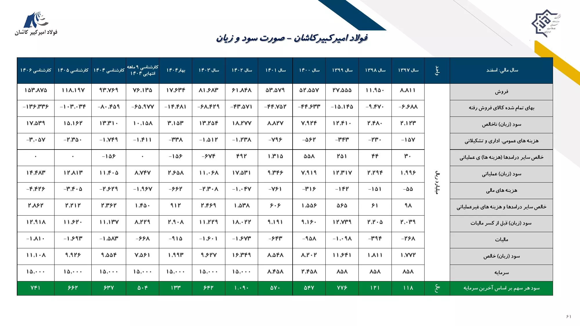 📊 خلاصه تحلیل بنیادی شرکت فولاد امیرکبیر کاشان