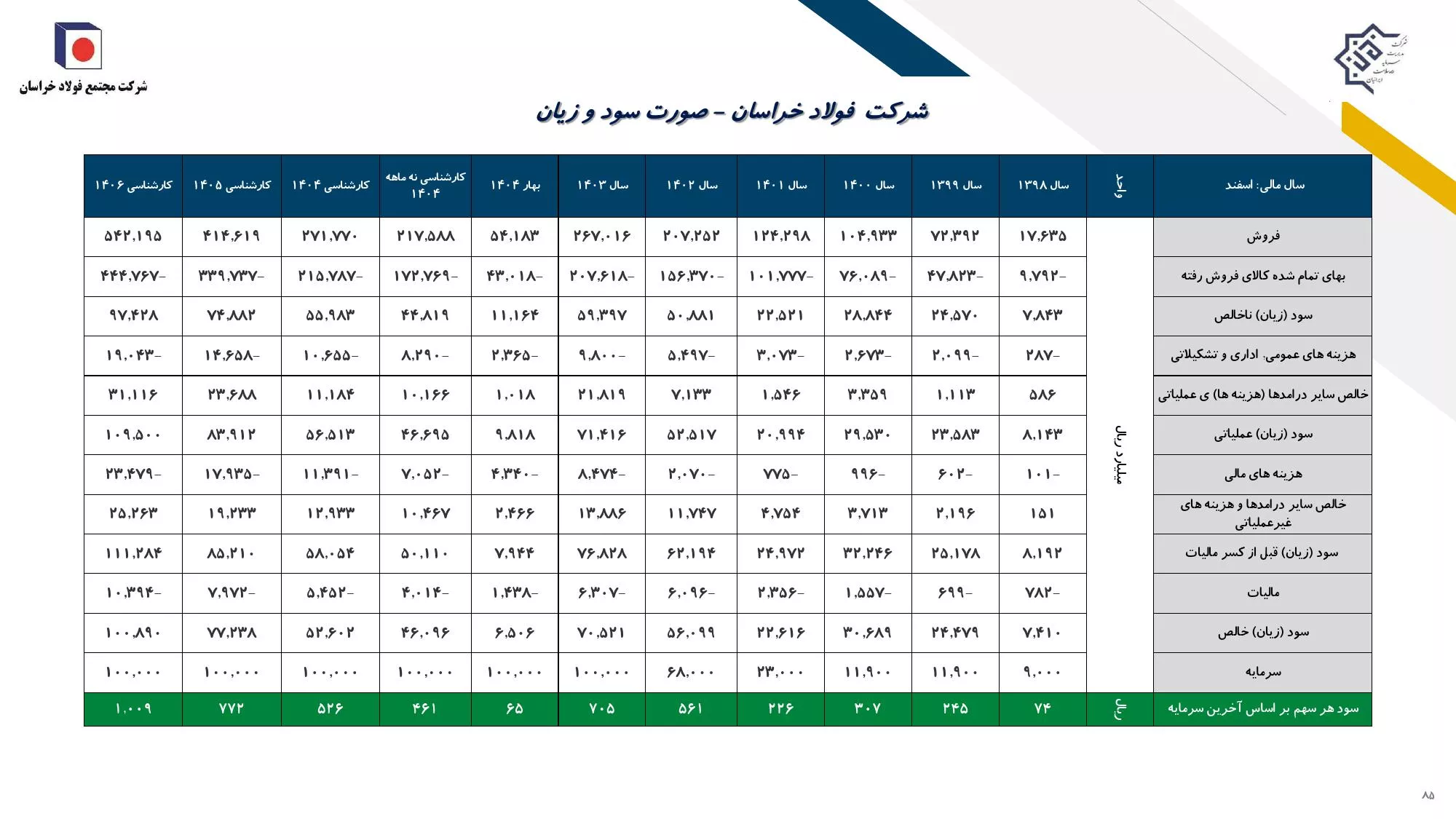 📌 بررسی عملکرد شرکت فولاد خراسان (فخاس) و کارشناسی سود و زیان سال مالی 1403