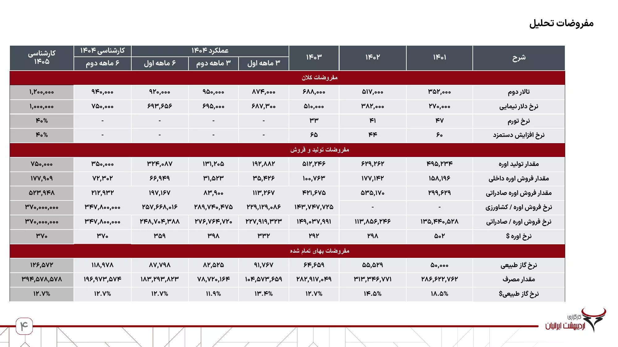 لازم به ذكر است طبق آناليز حساسيت و نرخ گاز خوراك؛ تغييرات سود براي سال ١٤٠٢ پيش بيني شده است.