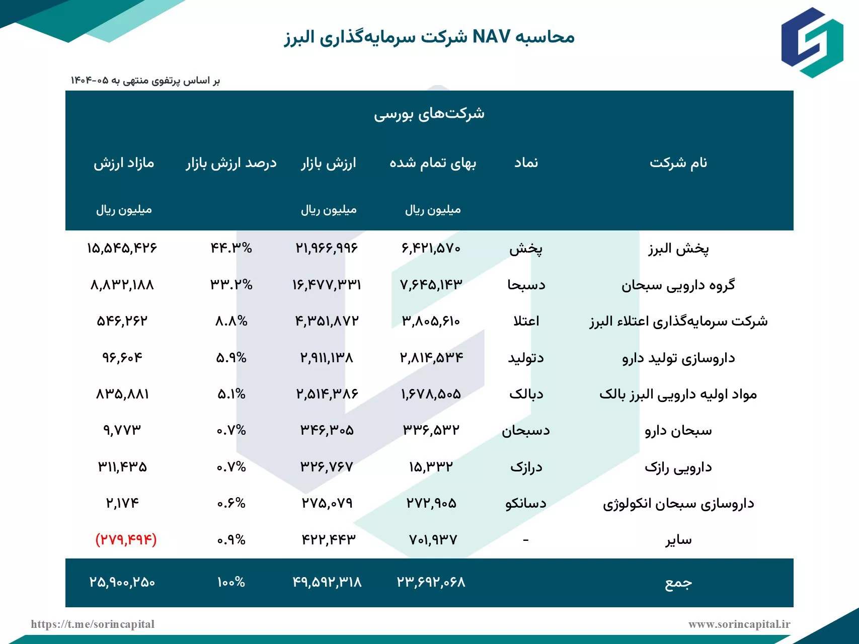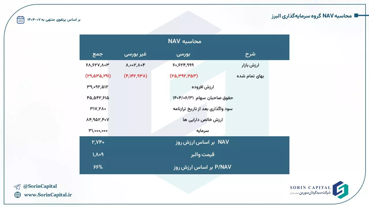 بدین ترتیب NAV هر سهم #والبر 7,918 ریال و نسبت P/NAV روز شرکت 71 درصد می باشد.