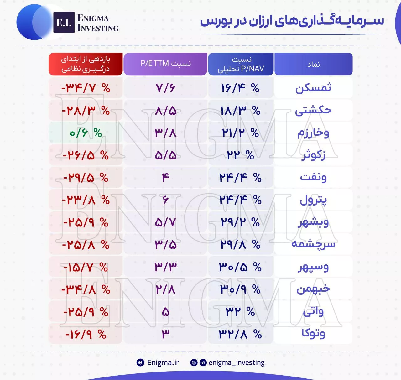 🔸نمادهای با نسبت P/NAV کمتر از ۵۰ درصد.