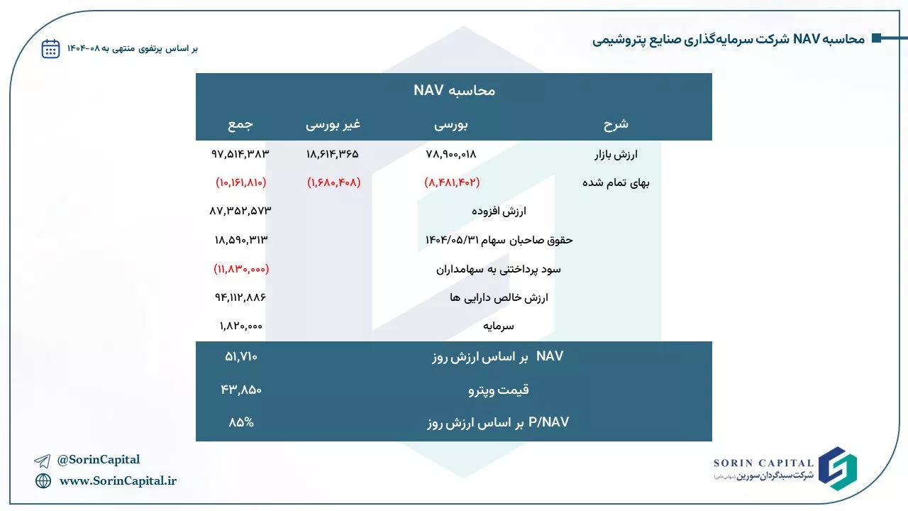 بدین ترتیب NAV هر سهم #وپترو 54,853 ریال و نسبت P/NAV روز شرکت 59 درصد می باشد.