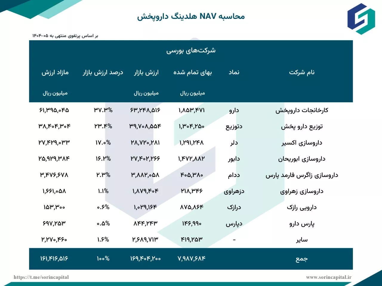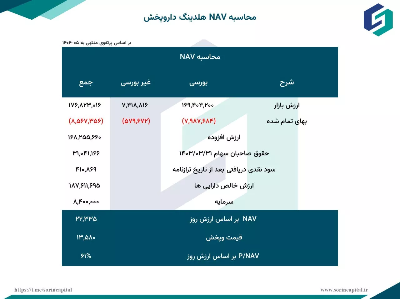 بدین ترتیب NAV هر سهم #وپخش 18056 ریال و نسبت P/NAV روز شرکت 71 درصد می باشد.