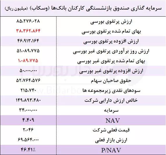 ◀️ محاسبه (NAV) و سود کارشناسی سال مالی1402 شرکت سرمایه گذاری صندوق بازنشستگی کارکنان بانک ها (وسکاب)