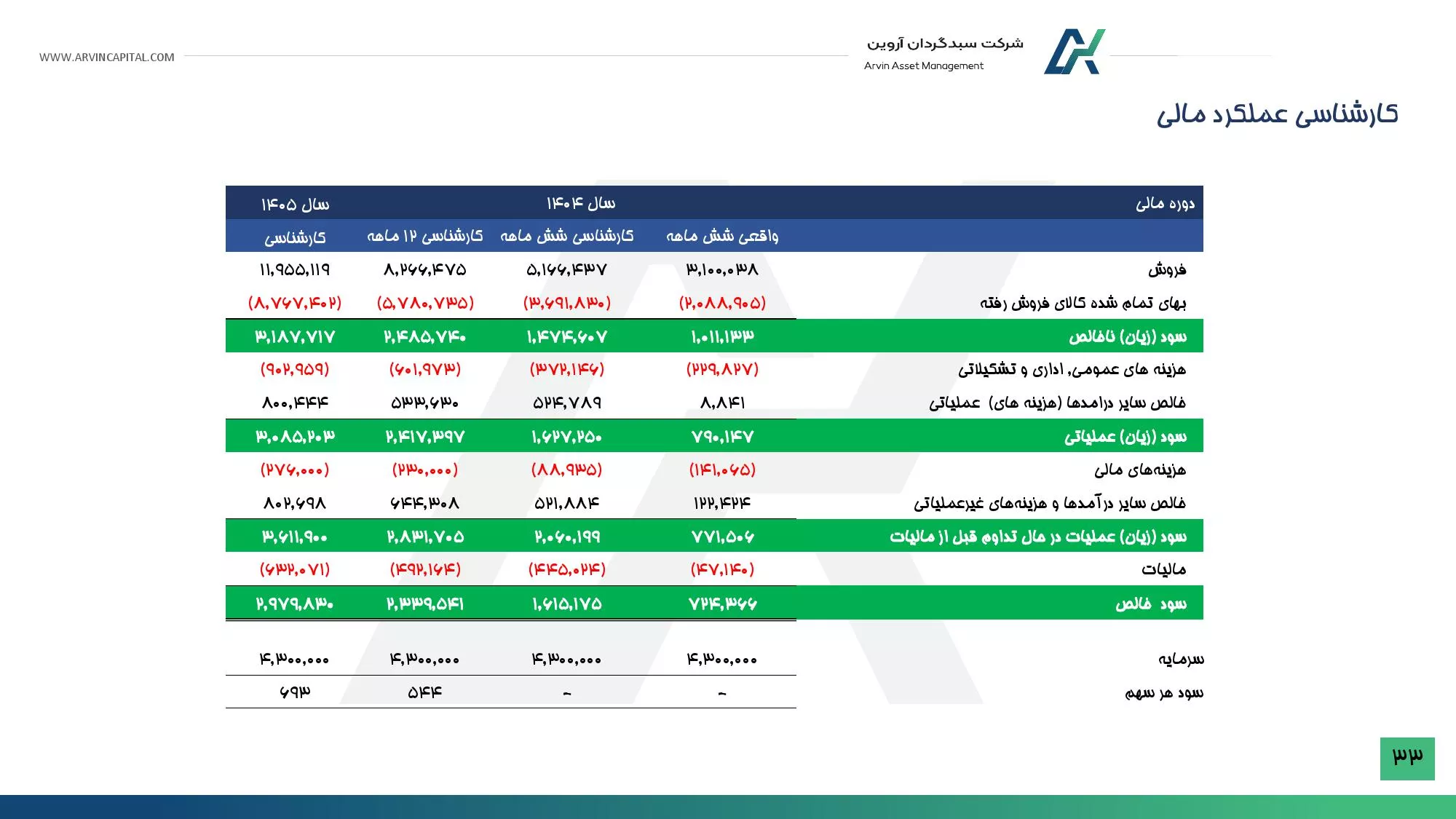 همچنين شركت به تازگي از محل سود انباشته افزايش سرمايه داده است. با توجه به مفروضات فوق و با توجه به افزايش قيمت هاي جهاني كاموديتي ها، براي سال مالي ١٤٠٣ و ١٤٠٤ به ترتيب سودهاي ١،١٩٤ و ١،٢١٢ محاسبه گرديده است.