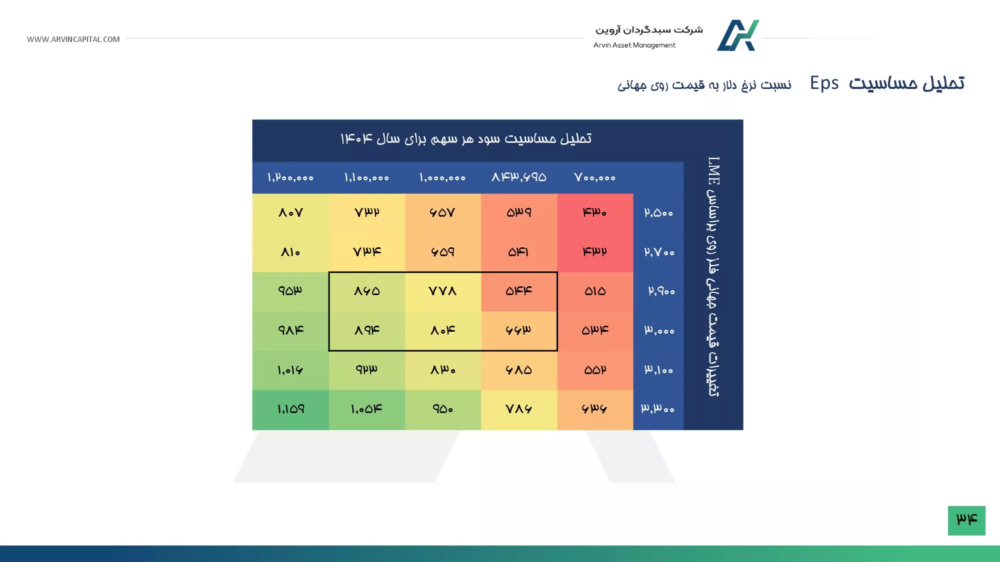 تحلیل حساسیت سود 1401 شرکت بر اساس تغییرات نرخ جهانی شمش روی و نرخ ارز به شرح جدول ذیل می باشد.
