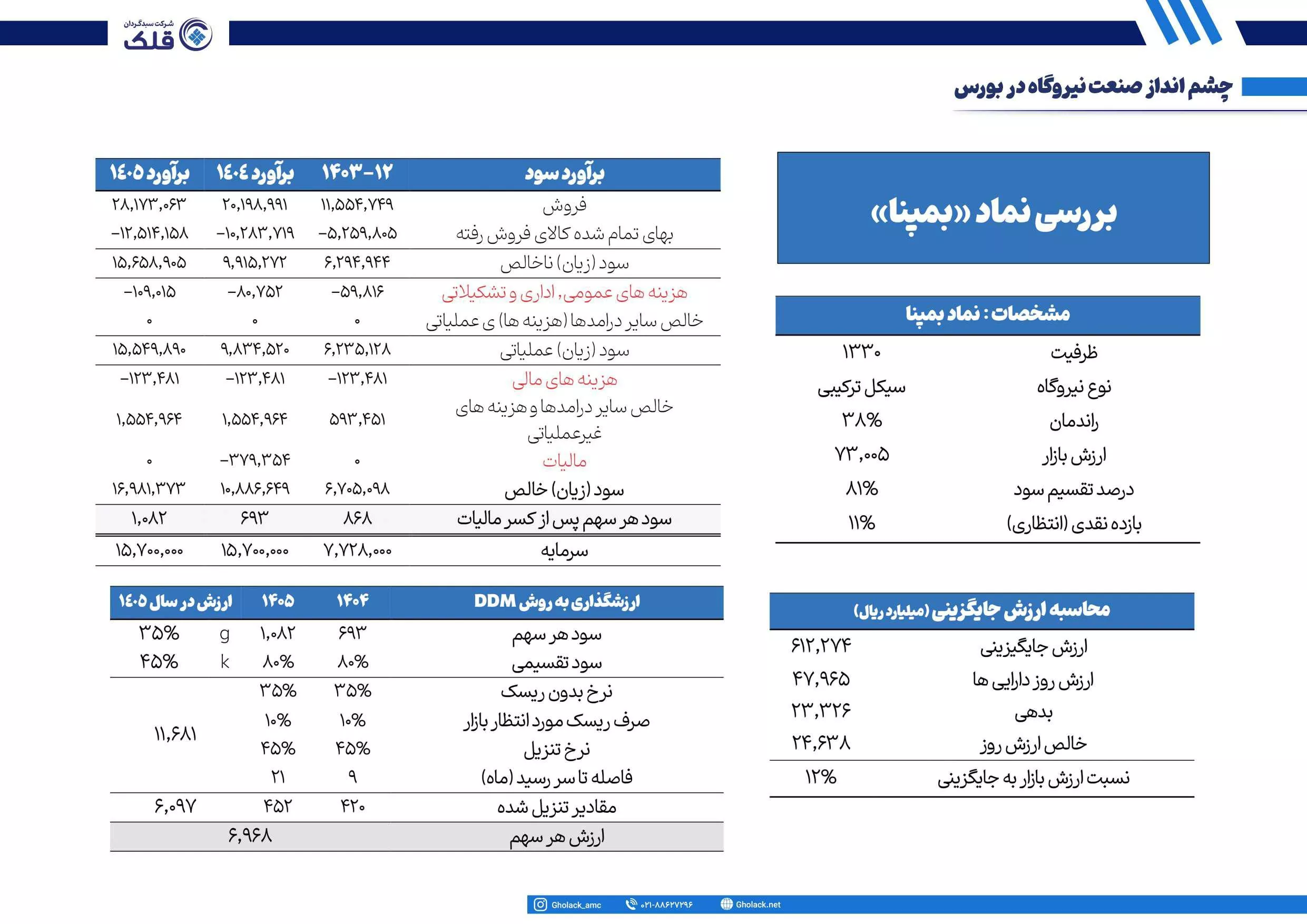 ✅ در این ارزیابی طرح توسعه بجهرم نیز در نظر گرفته شده است اما سود اوری ای برای طرح توسعه فاز ۲ و ۳ بمپنا در سال ۱۴۰۱ لحاظ نشده است.