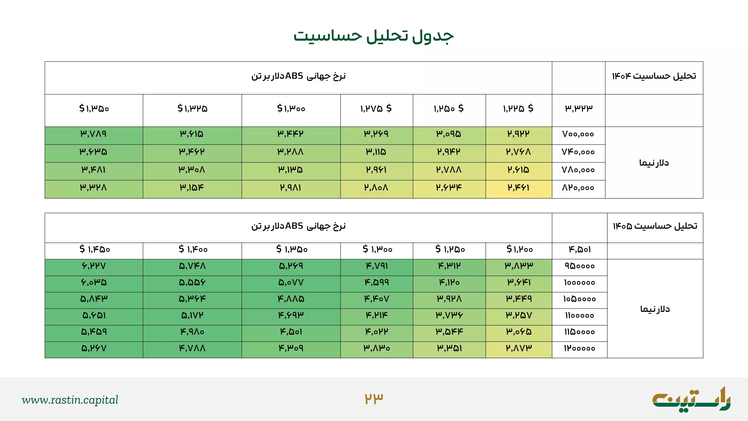 مقدار تولید و فروش سال آینده: ۴۵,۳۰۰ تن | نرخ جهانی ABS: 1403 دلار | استایرن: 1100 دلار