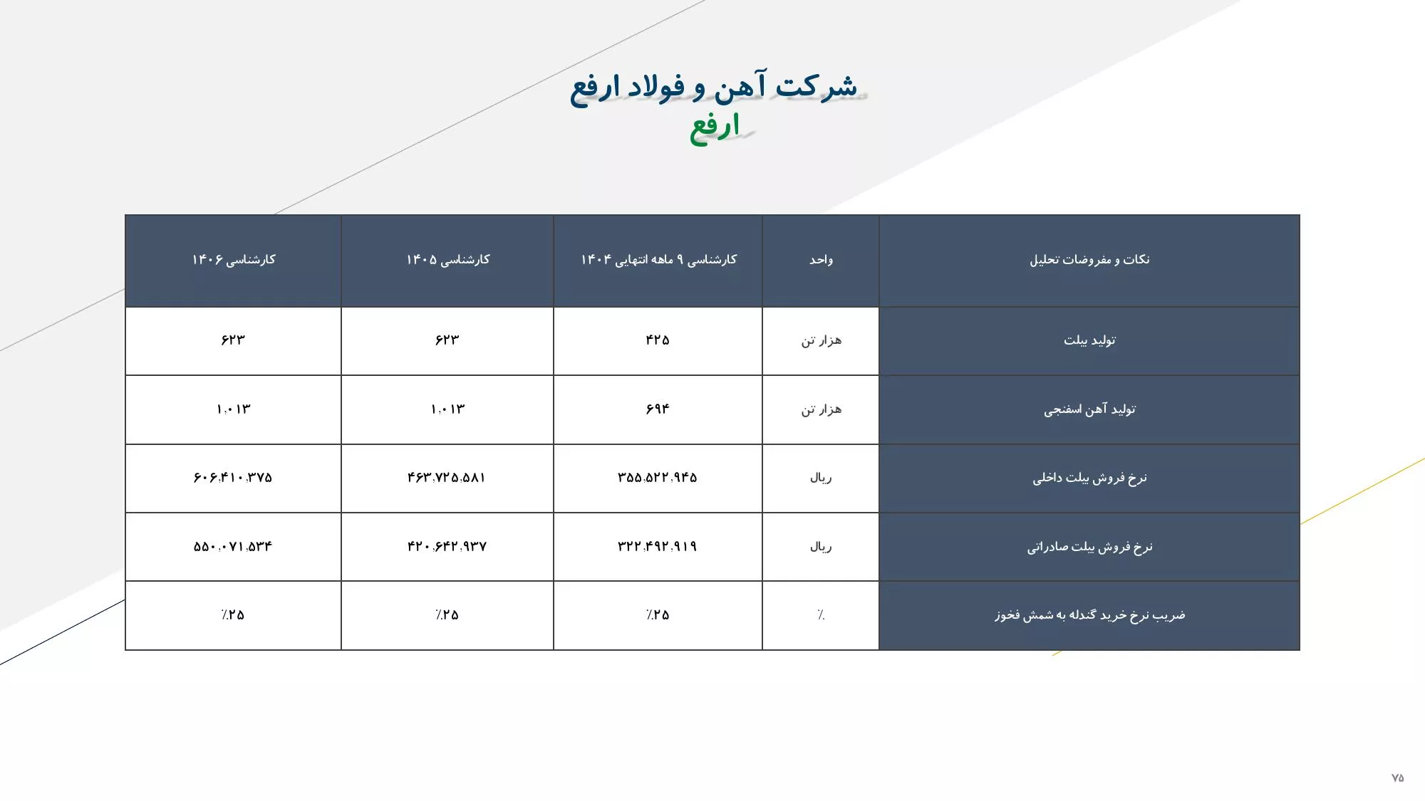 📊 خلاصه تحلیل بنیادی آهن و فولاد ارفع