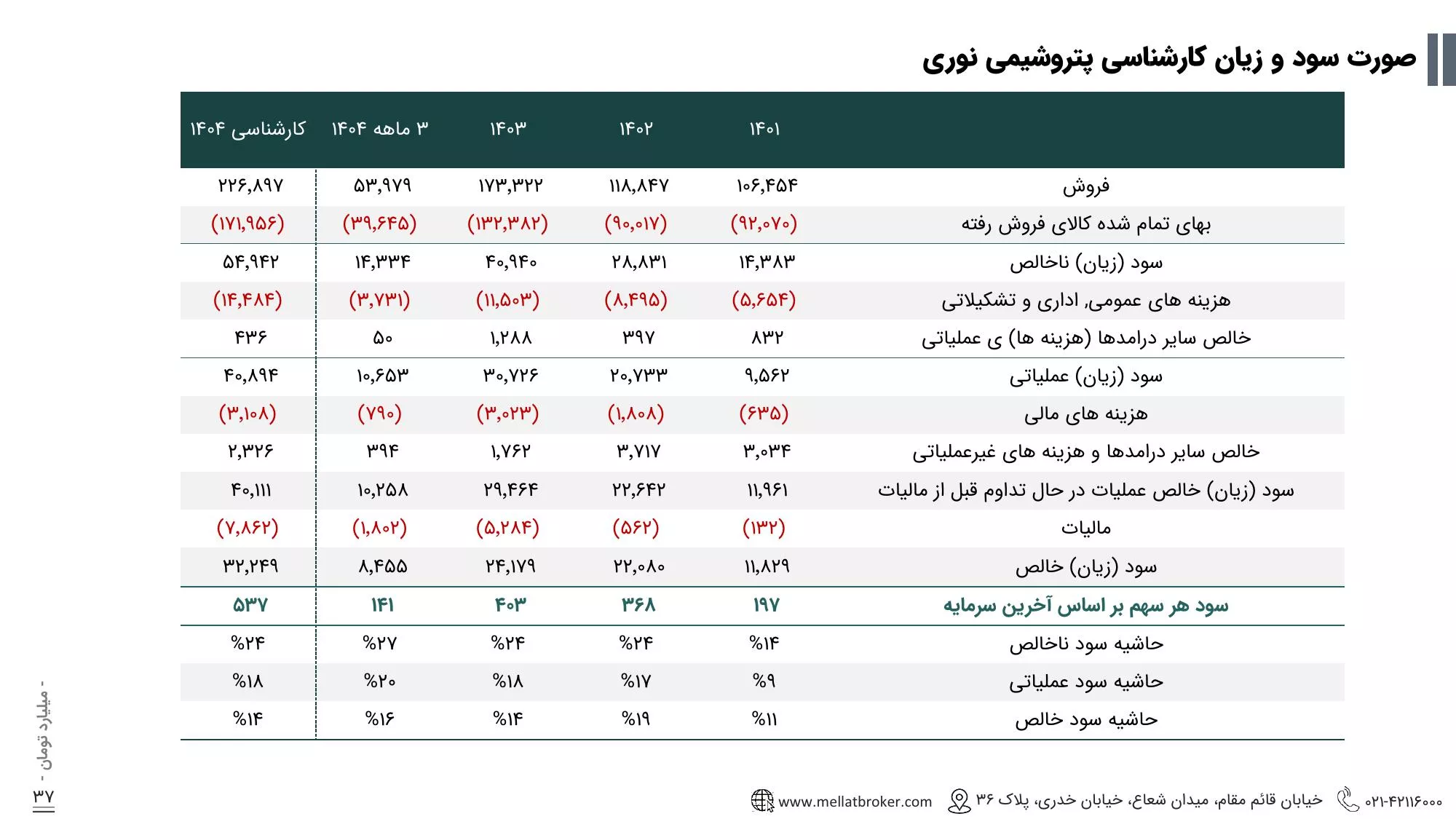گزارش تحلیل شرکت پتروشیمی نوری