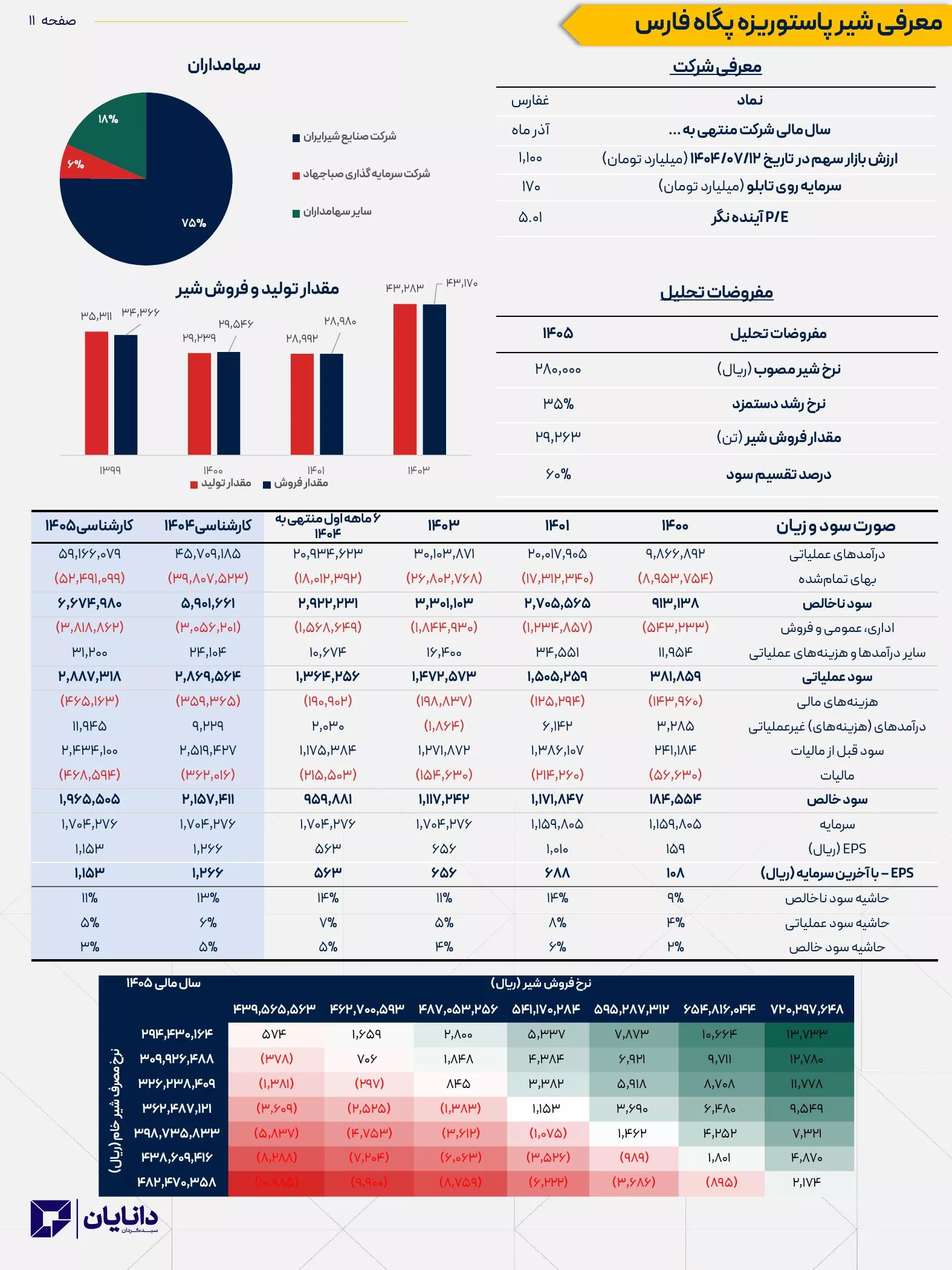 🔹 خلاصه تحلیل بنیادی شرکت شیر پاستوریزه پگاه فارس (غفارس)