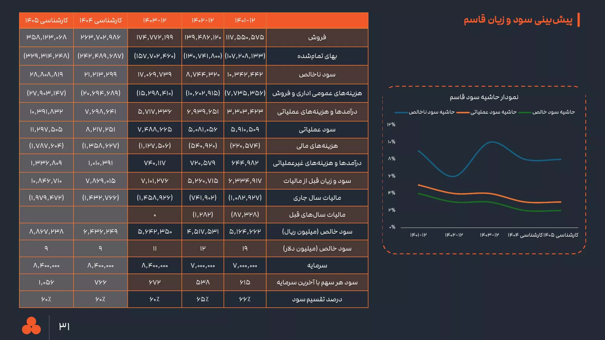 گفتنی است سود سال 1402حدود 1385 ریال برآورد شده است و در صورتی که از سال 1401 حاشیه سود رو به کاهش گذاشته و از 13 درصد به 9 درصد رسیده است.