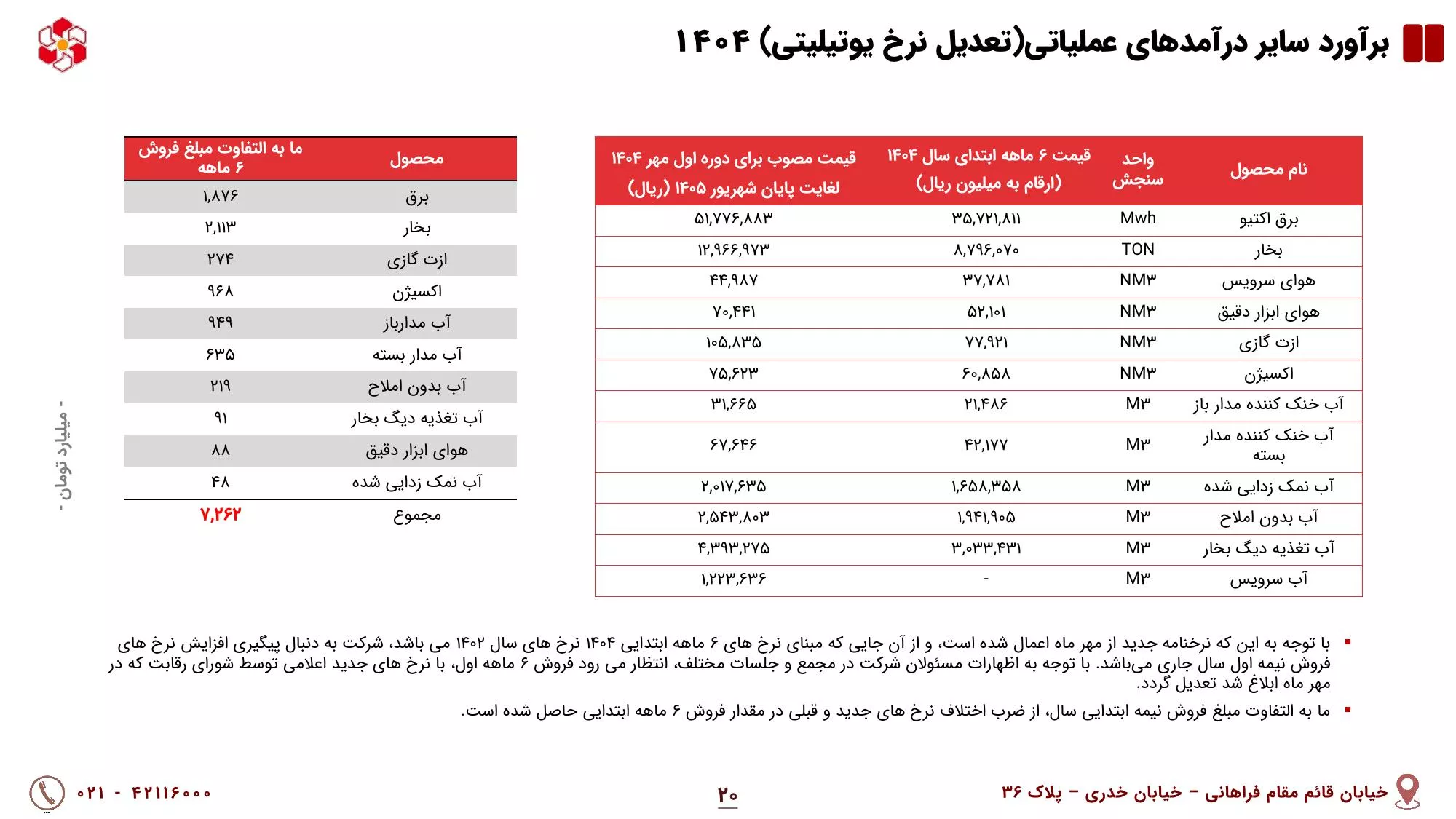 در اسفند ماه سال 402، نرخ سرویسهای جانبی برای سال 401 ابلاغ شده و منجر به تعدیل 5168 میلیارد تومانی درآمدهای عملیاتی در سال مالی 402 شد و با توجه به عدم ابلاغ نرخهای جدید برای سال مالی 402، صورت حساب های فروش به صورت علی الحساب و بر اساس نرخهای اعلامی سال 401 صادر گردیده است و در صورت ابلاغ نرخهای جدید ، سود ان سال نیز تحت تاثیر قرار خواهد گرفت.