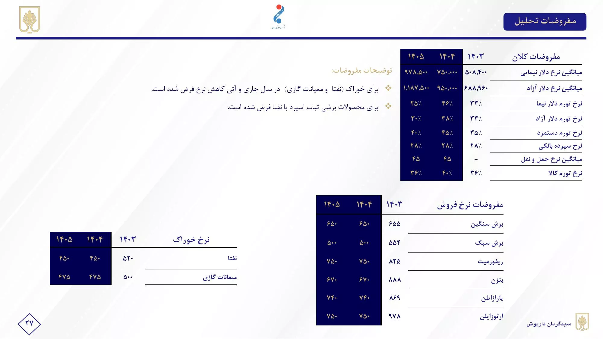 نرخ دلار توافقی برای سال 1404، 780000 ریال و نرخ تورم 35 درصد فرض شده است.