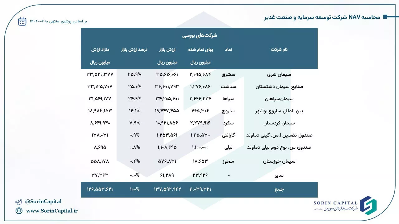 بدین ترتیب NAV هر سهم #سغدیر 16,013 ریال و نسبت P/NAV روز شرکت 51 درصد می باشد.