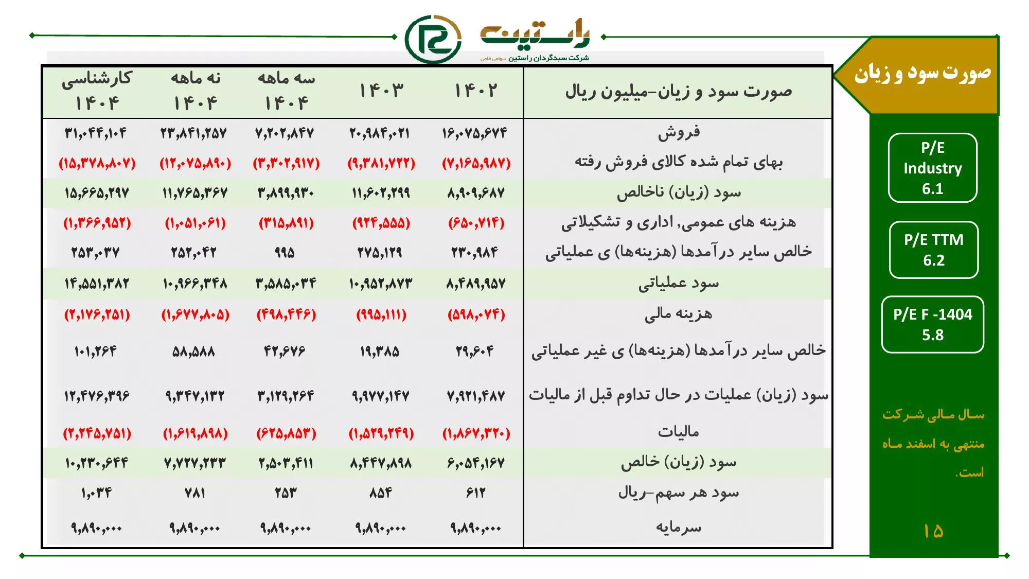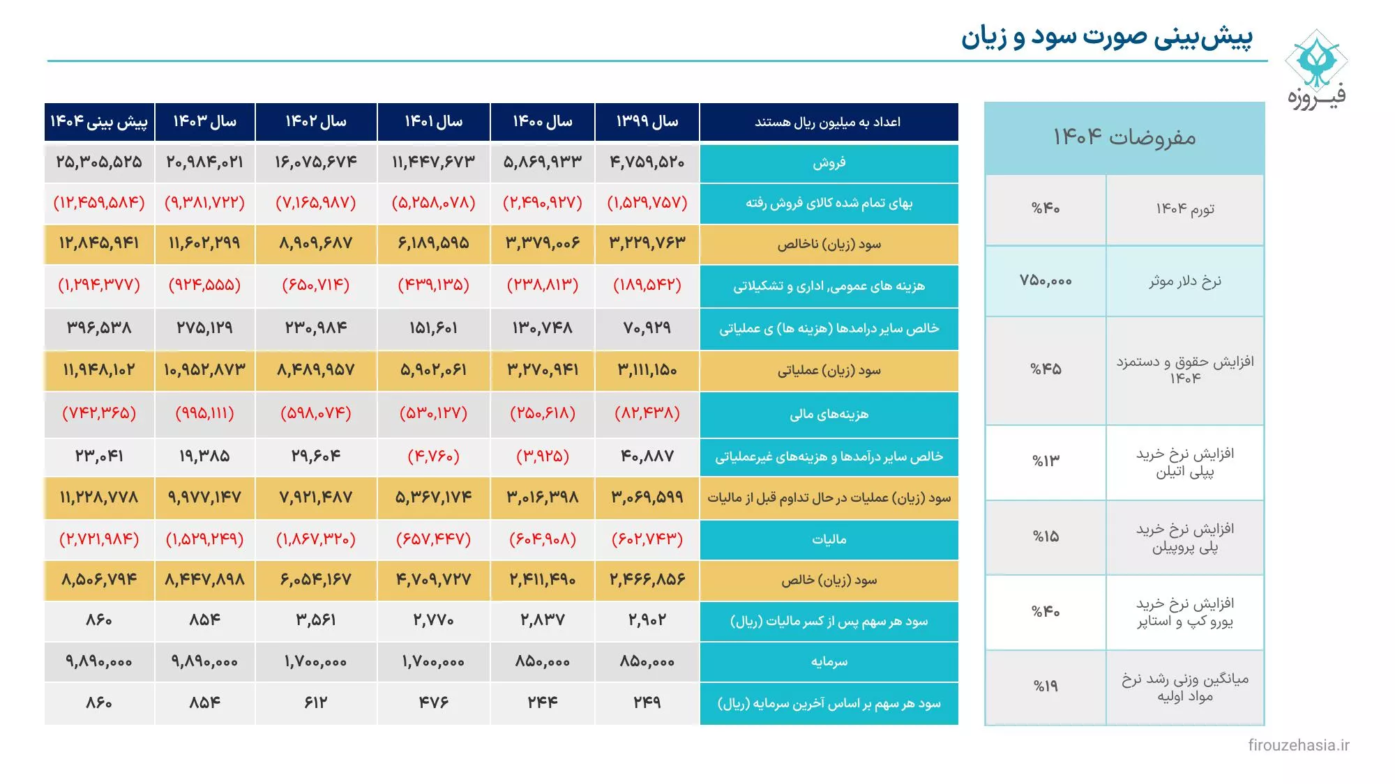 🔹 برآورد سود و زیان