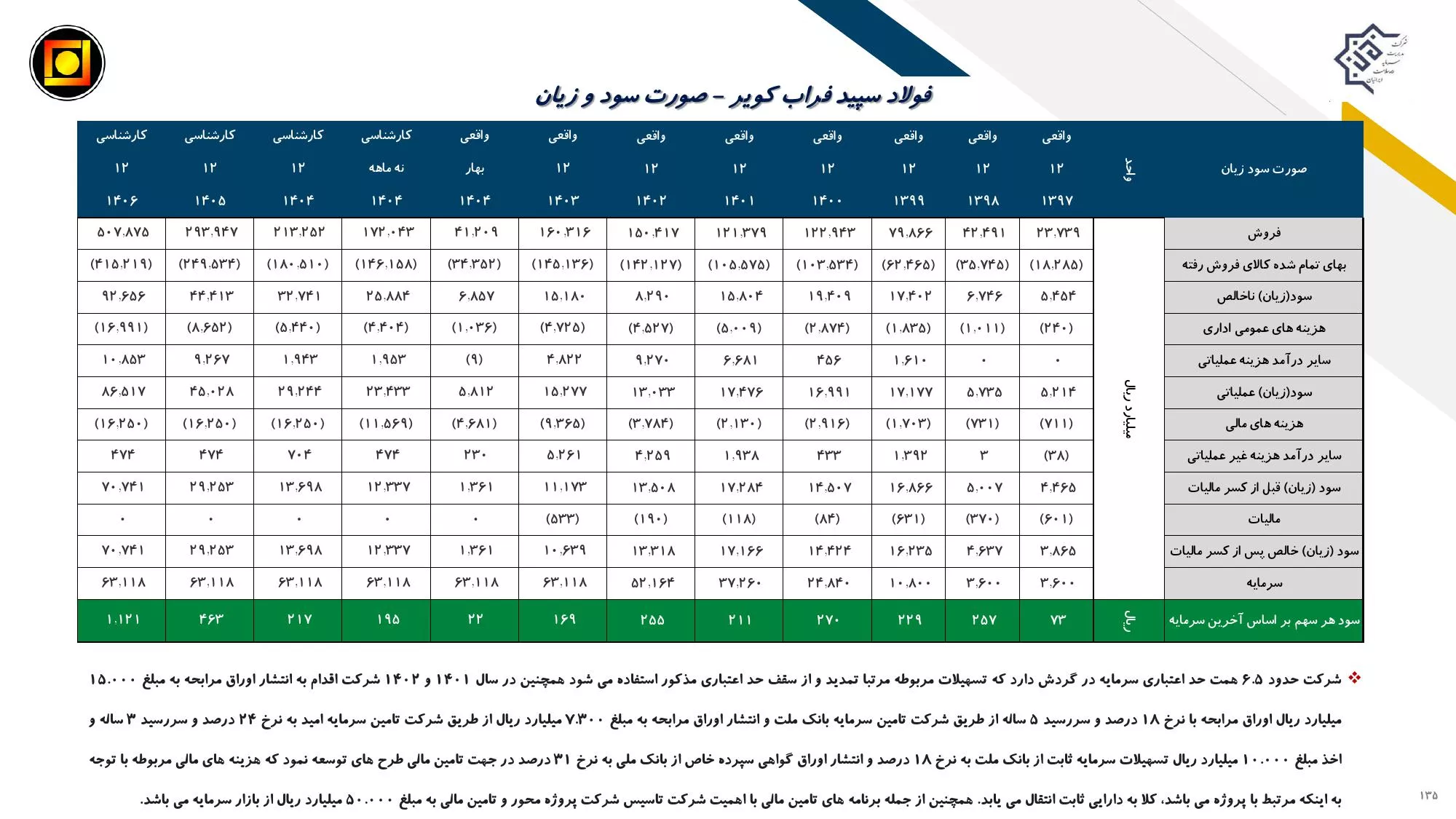 📌 بررسی عملکرد شرکت تولیدی فولاد سپید فراب کویر (کویر) و کارشناسی سود و زیان سال مالی 1402 و 1403