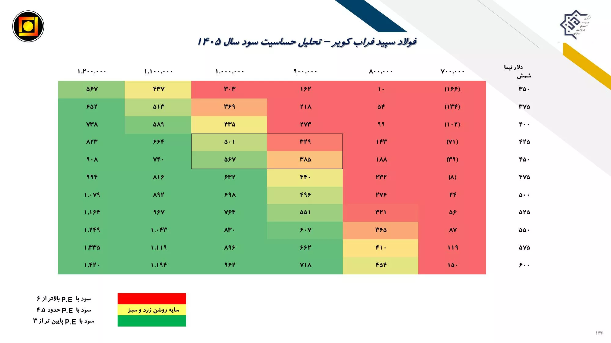ما نیز به تحلیل حساسیت EPS و P/E تحلیلی شرکتهای تولیدکننده میلگرد با ۳ سناریوی ۱۱، ۱۶ و ۲۲ درصدی برای دوره مالی ۱۴۰۳ پرداختیم.