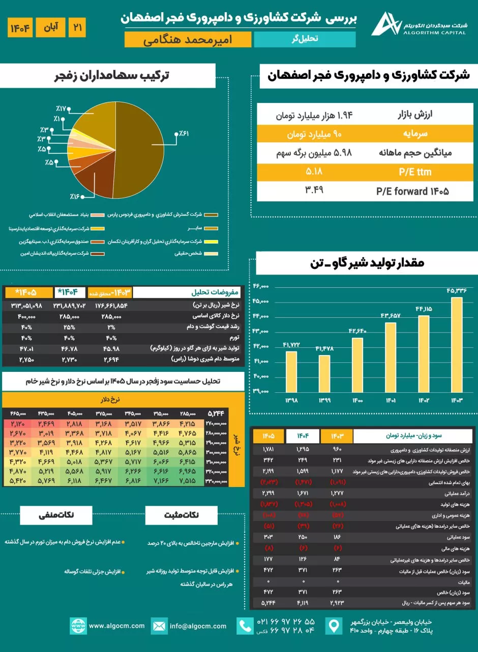 🔍 بررسی شركت كشاورزي و دامپروری فجر اصفهان - ۲۱ آبان ماه ۱۴۰۴